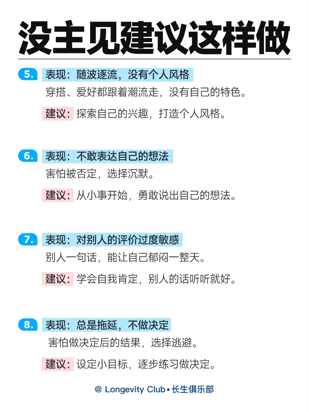 8⃣ 表现8:总是拖延,不做决定