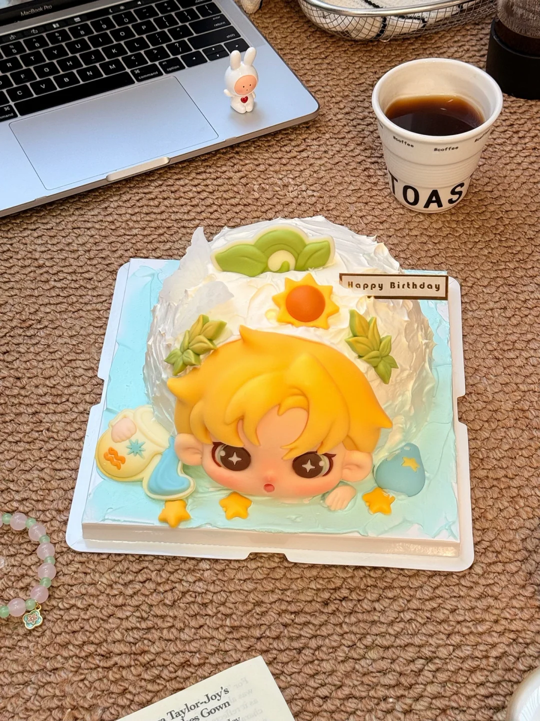搭配水瓶座蛋糕的蓝白奶油蛋糕,