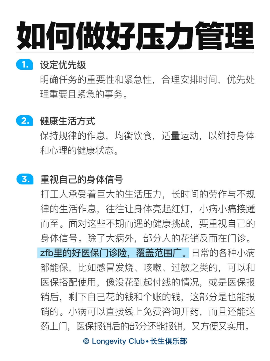 打工人承受着巨大的生活压力,长时间的劳作与不规律的生活作息,往往让身体亮起红灯,小病小痛接踵而至。面对这些不期而遇的健康挑战,要重视自己的身体信号。除了大病外,部分人的花销反而在门诊。zfb里的好医保门诊险,覆盖范围广。日常的各种小病都能保,比如感冒发烧、咳嗽、过敏之类的,可以和医保搭配使用,像没花到起付线的情况,或是医保报销后,剩下自己花的钱和个账的钱,这部分是也能报销的。小病可以直接线上免费咨询开药,而且还能送药上门,医保报销后的部分还能报销,又方便又实用。