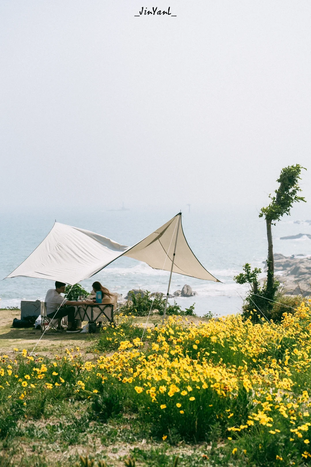 5⃣️鱼鸣嘴村:离主城区和各景点较远,人相对少的一片海域,6月海边开着浪漫的小黄花