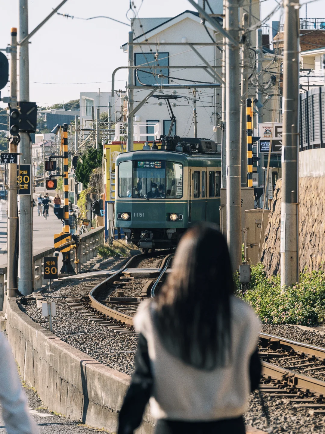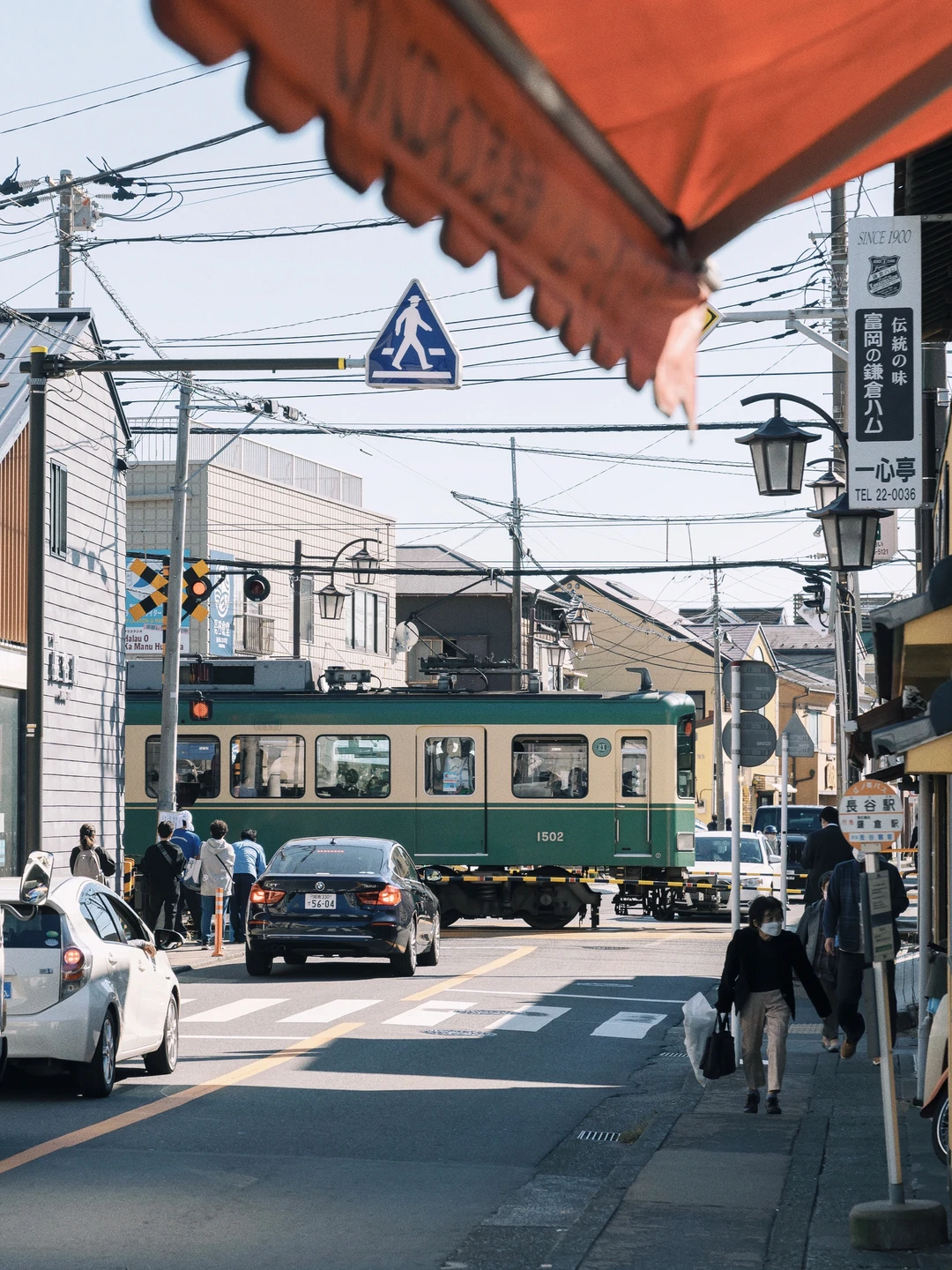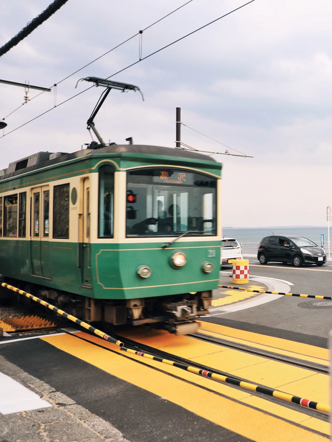 腰越到江之岛的电车,能拍到电车和汽车并行的画面,江之岛也值得单独留出半天时间游览,沿途的海景风光和山峦日落特别治愈;