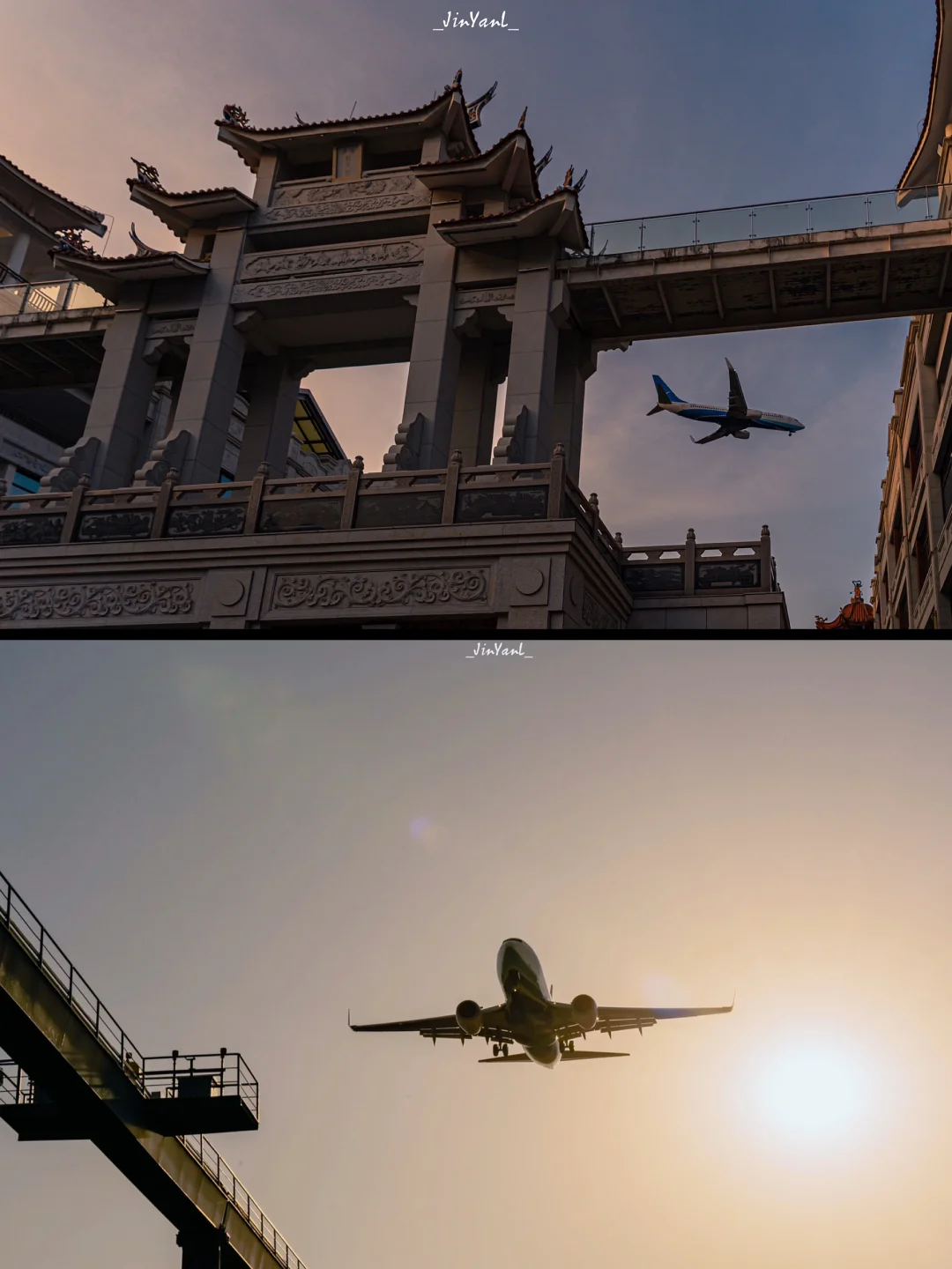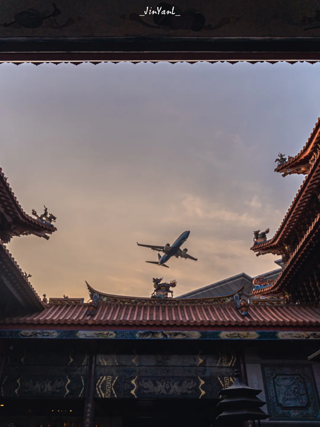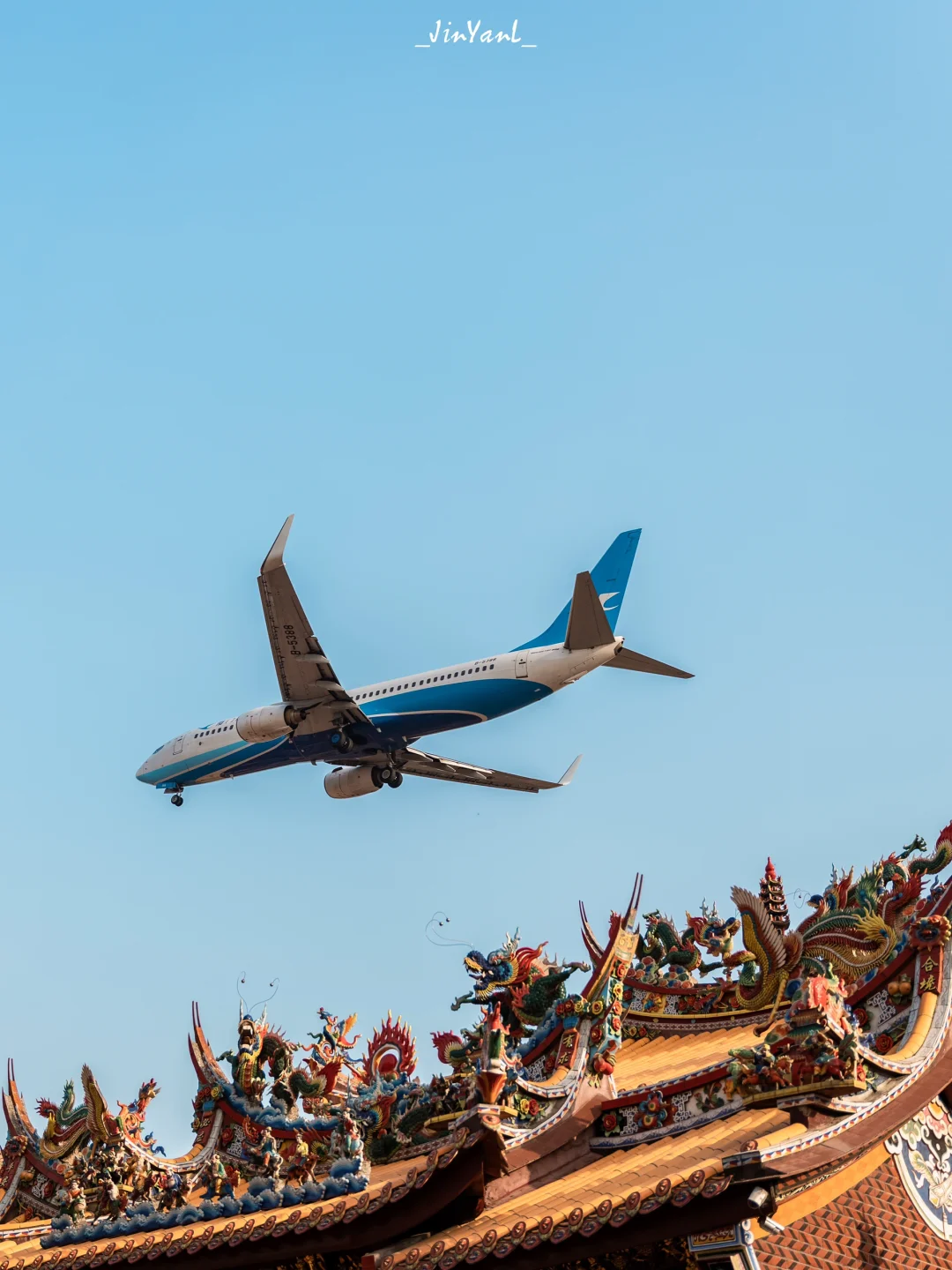 可以拍到超大飞机与寺庙古建同框,需要比较广角的镜头,否则就像我这张😭(没镜头手机也很好用!)