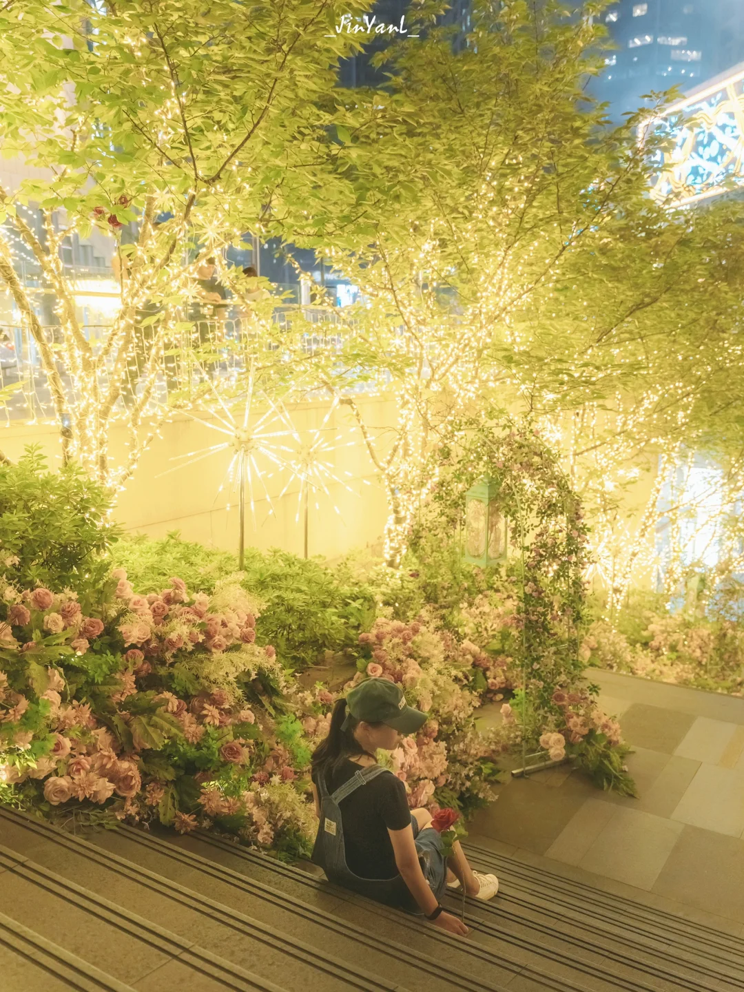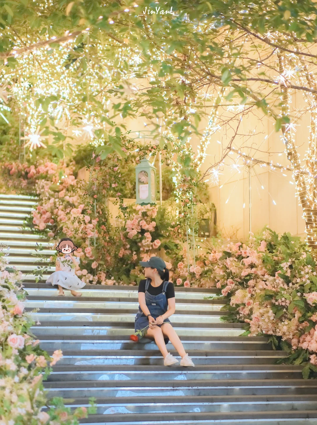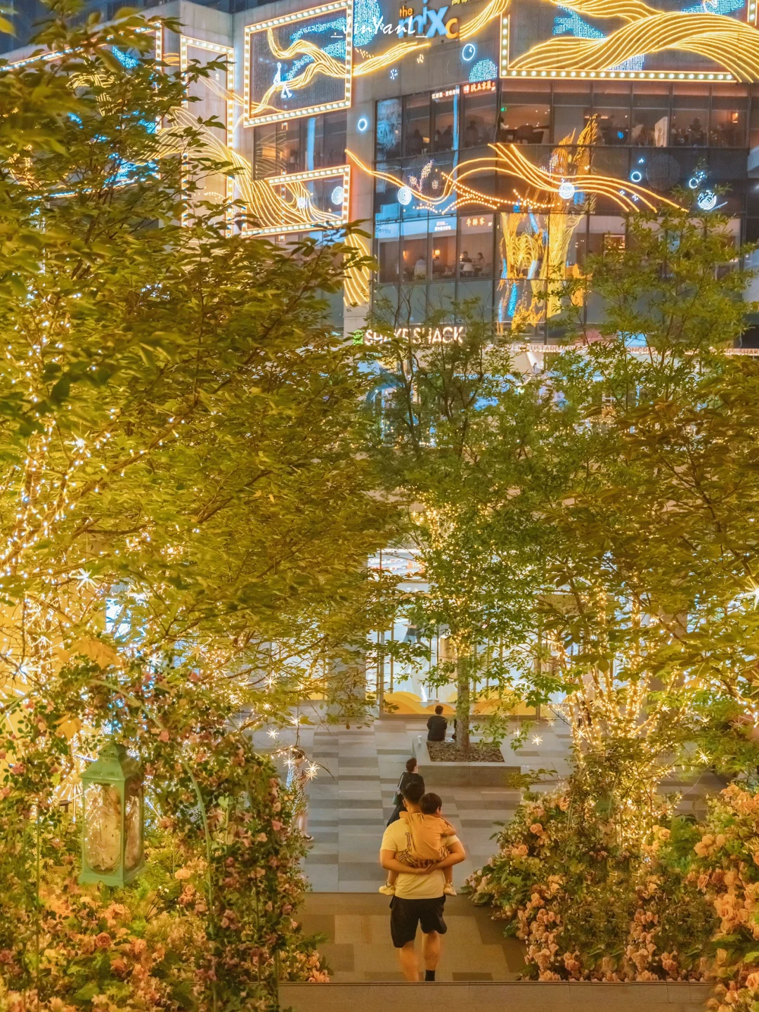 2⃣️万象民心路下沉广场的玫瑰花阶梯,在傍晚暖暖的灯光下尤其浪漫,拍到好多恋人和小朋友在花海中打卡;