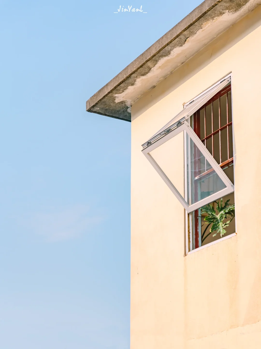 屋里的盆栽透过打开的窗望向外面的蓝天🪴