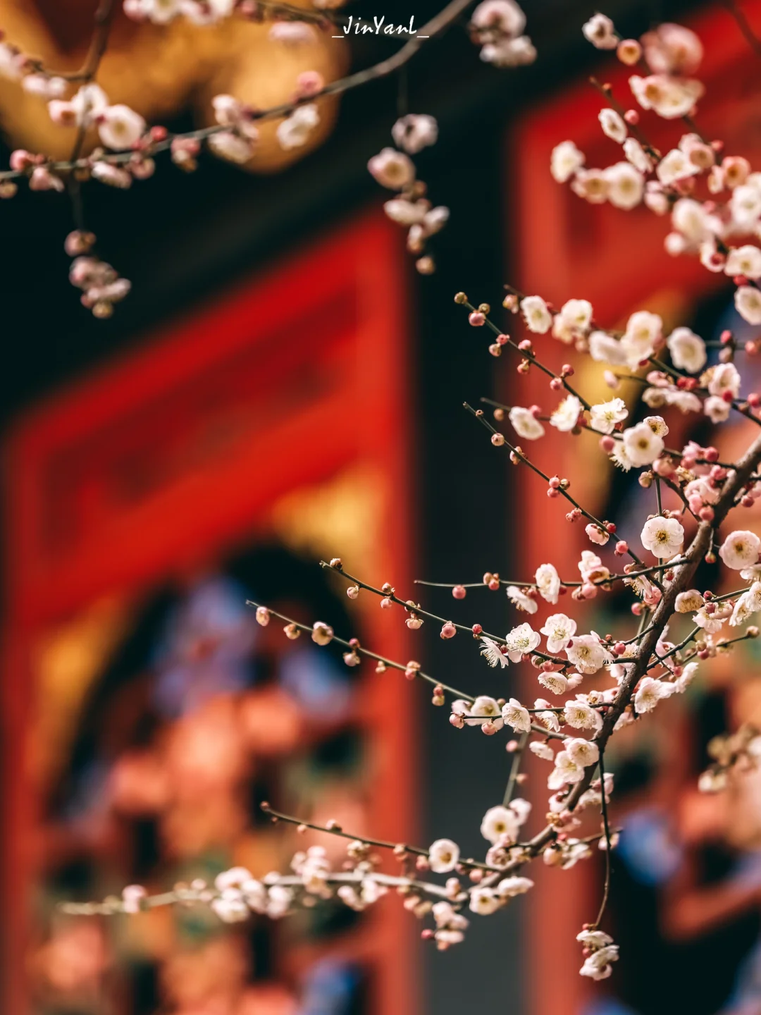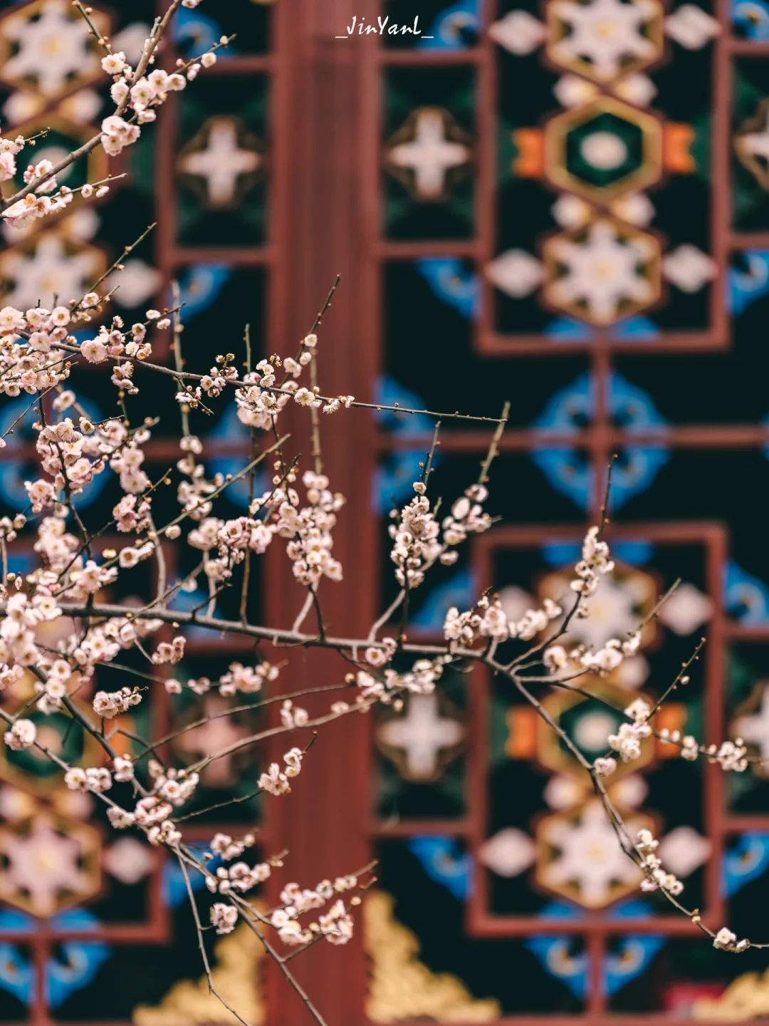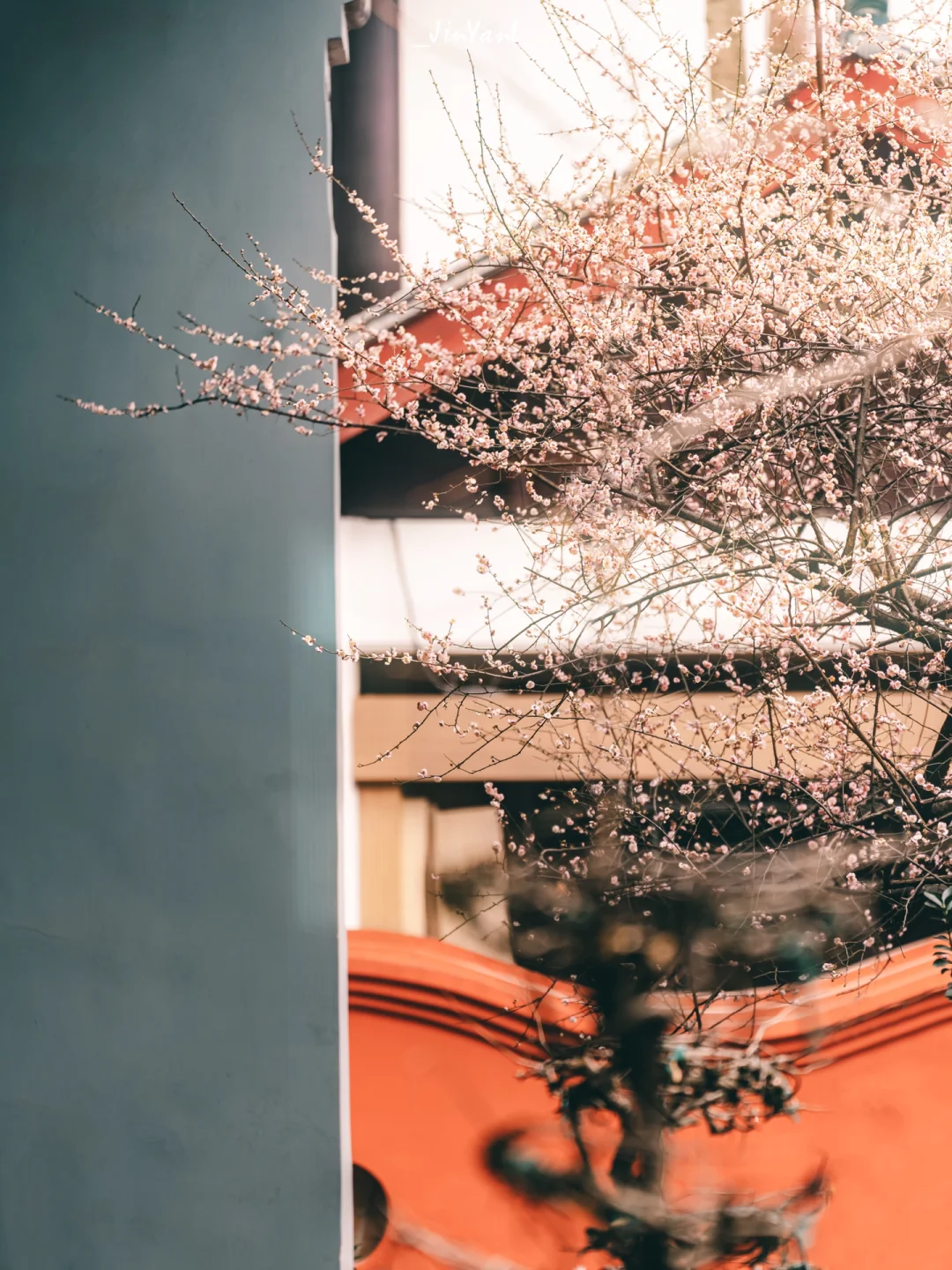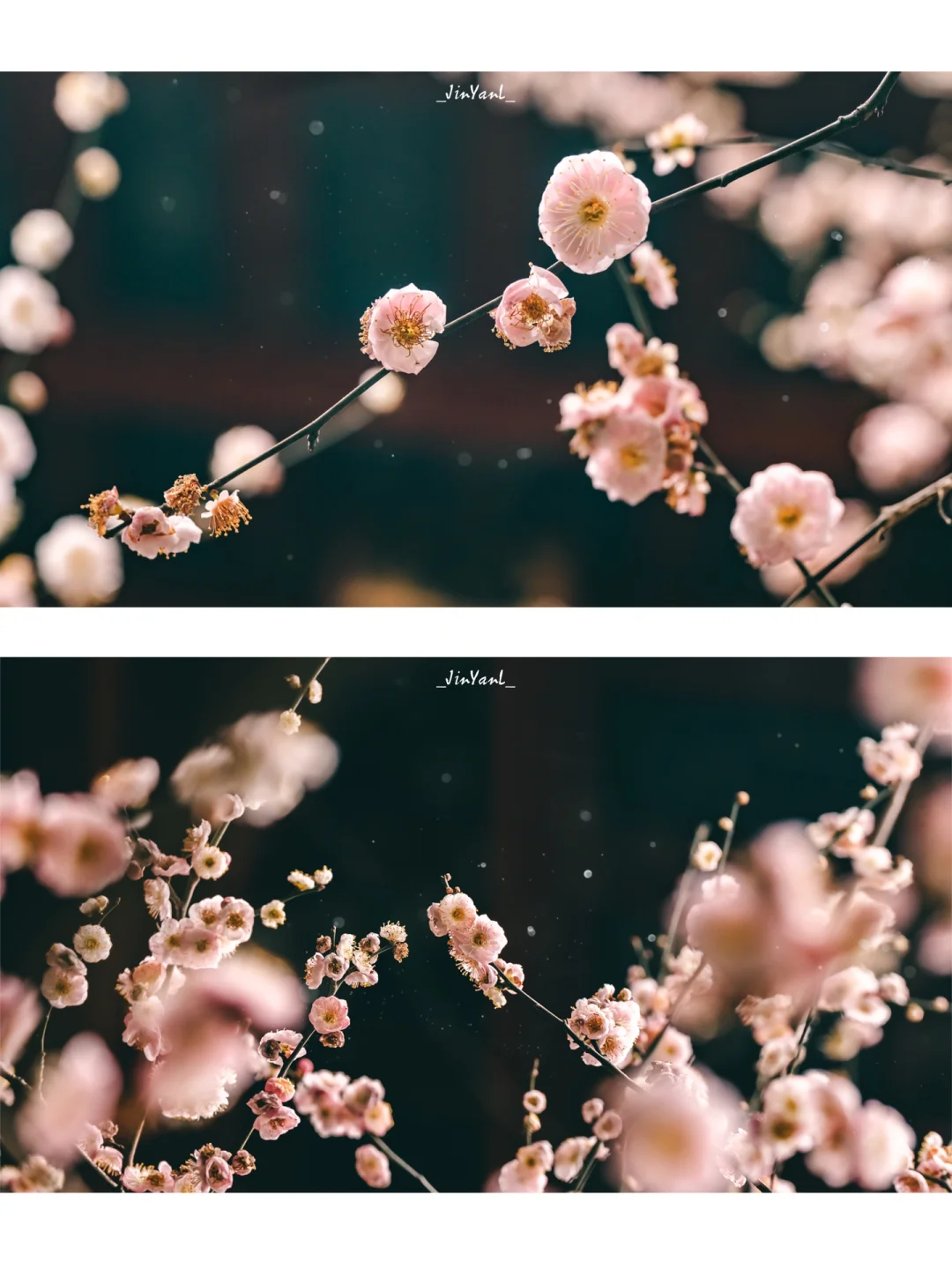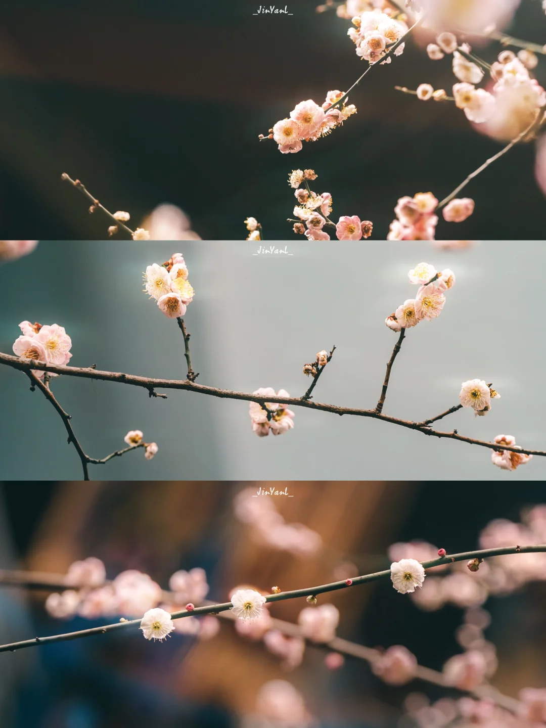 ·梅花枝丫繁杂,选取花枝部分,“折枝”拍摄