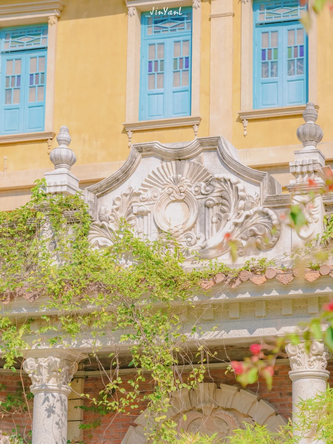 在中山公园地铁口有一栋黄墙蓝窗的洋房🏡
