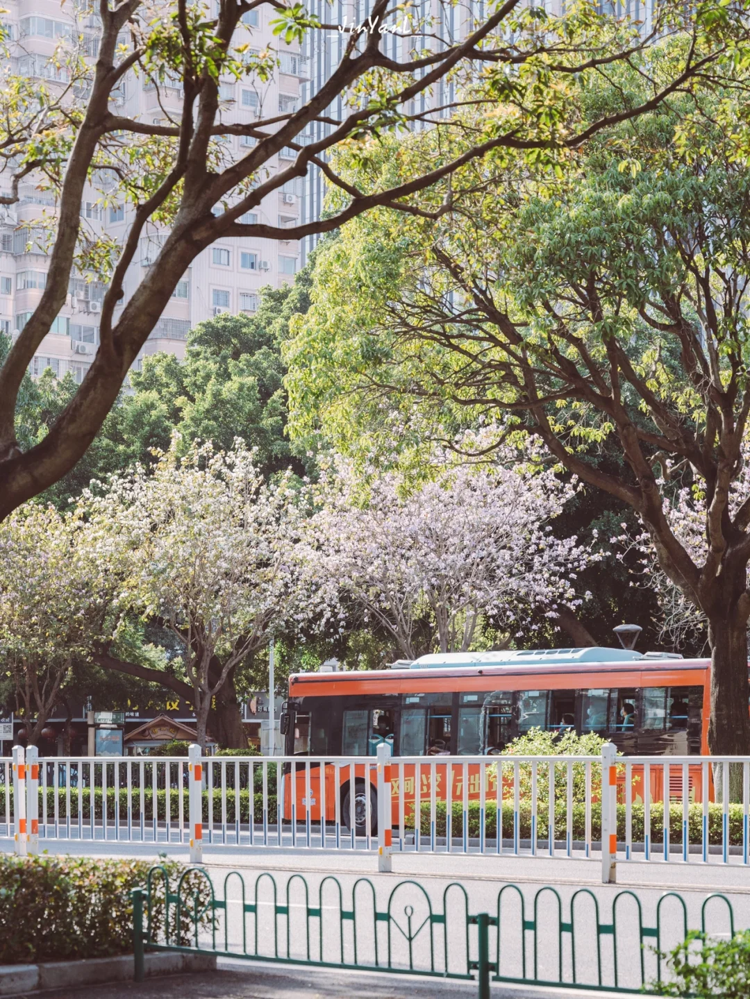 穿梭在花树下