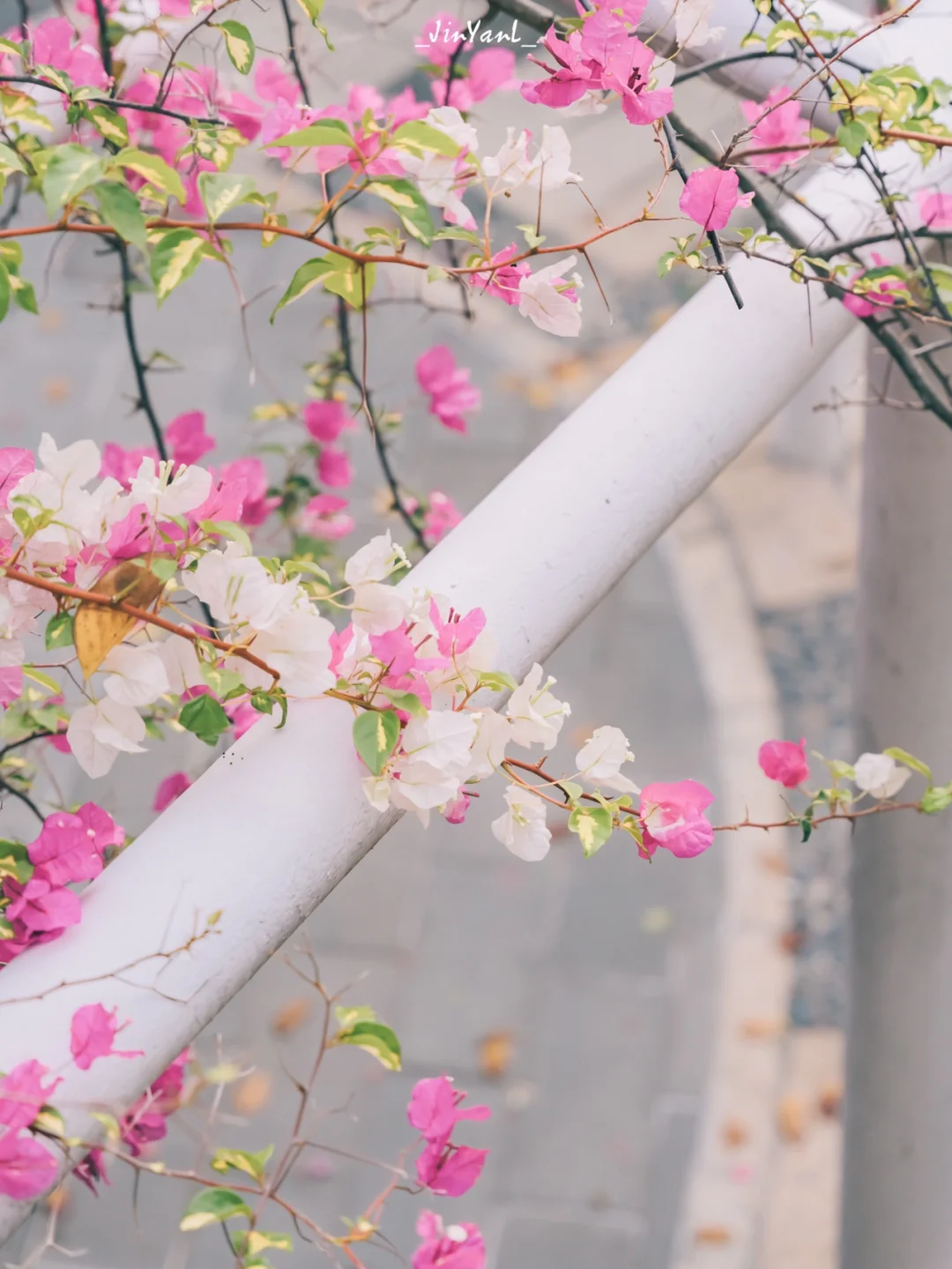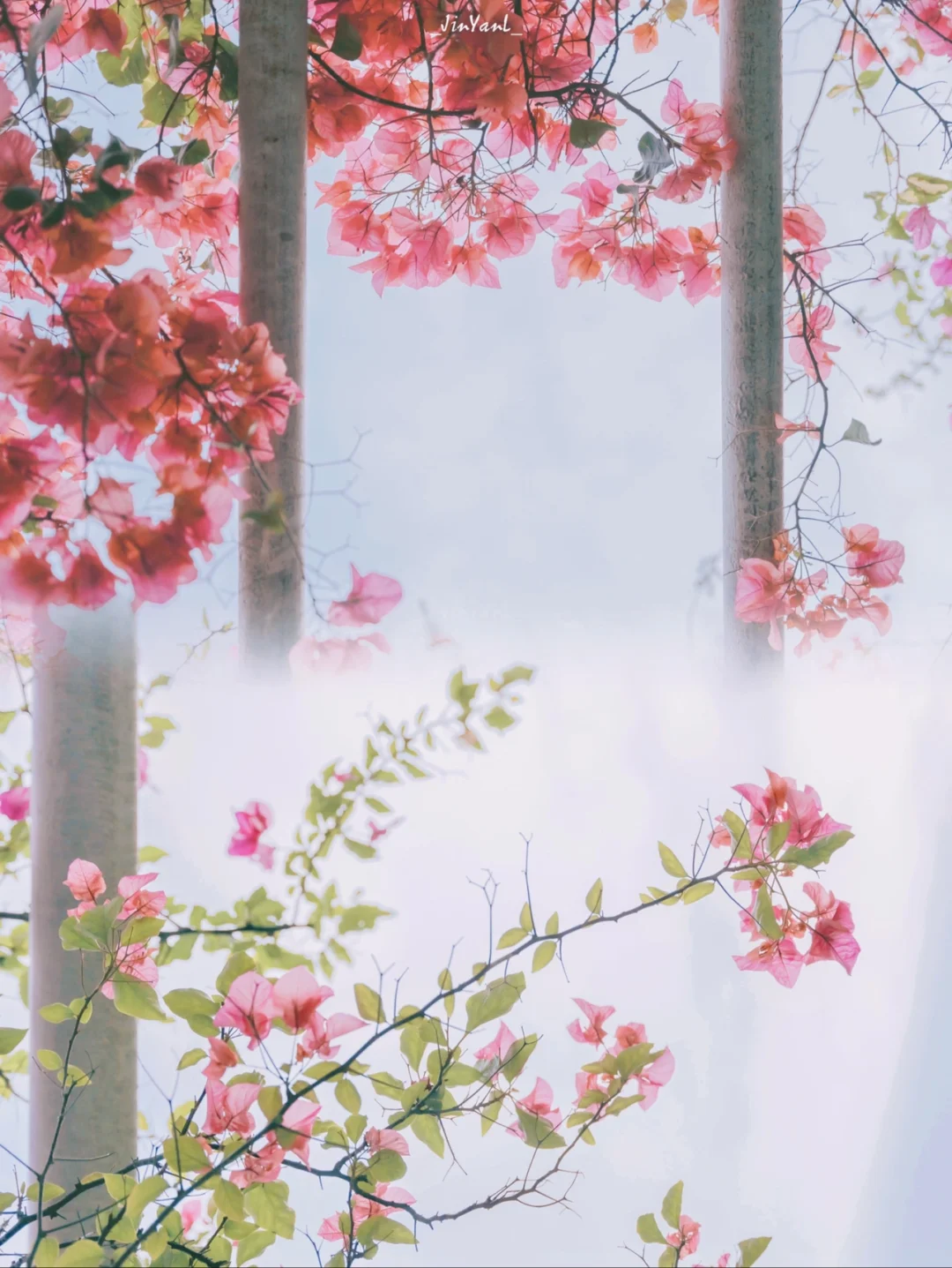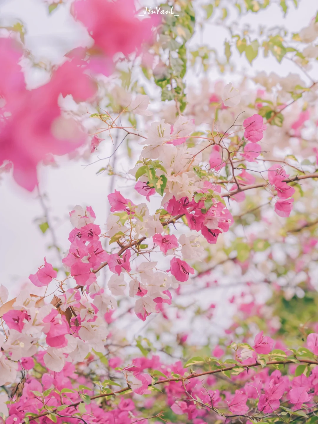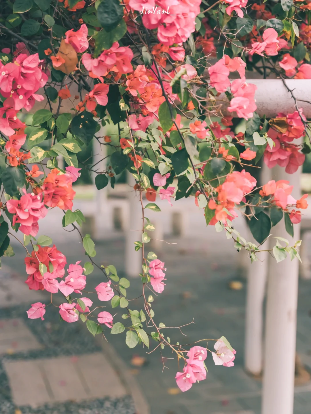 近距离以三角梅为背景拍人像大片哦