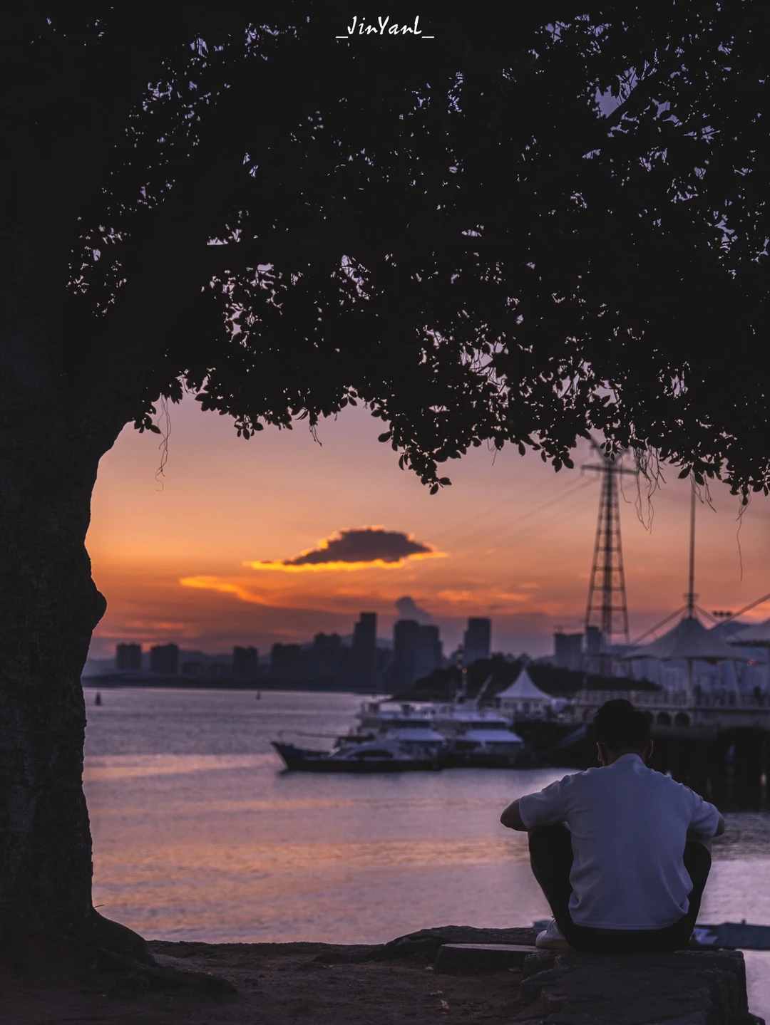 P2就是在旁边拍的一位小哥蹲在树下