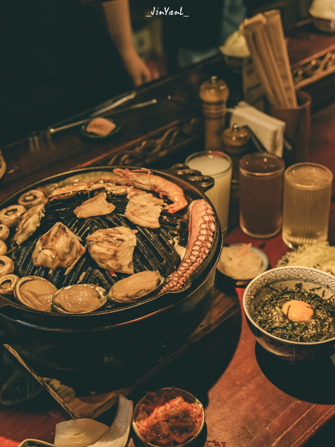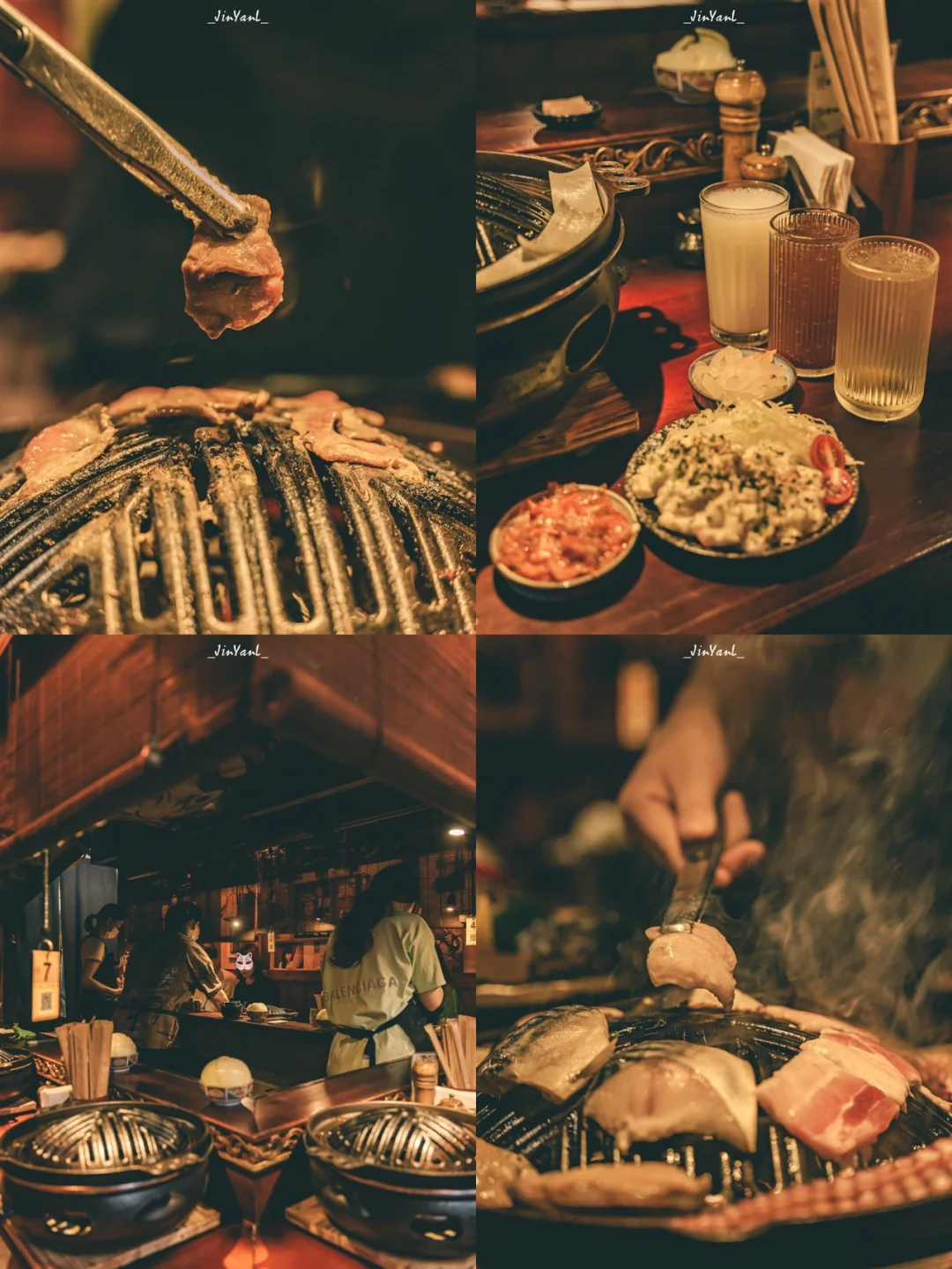 一楼围了一圈桌位店员在中间帮忙烤肉