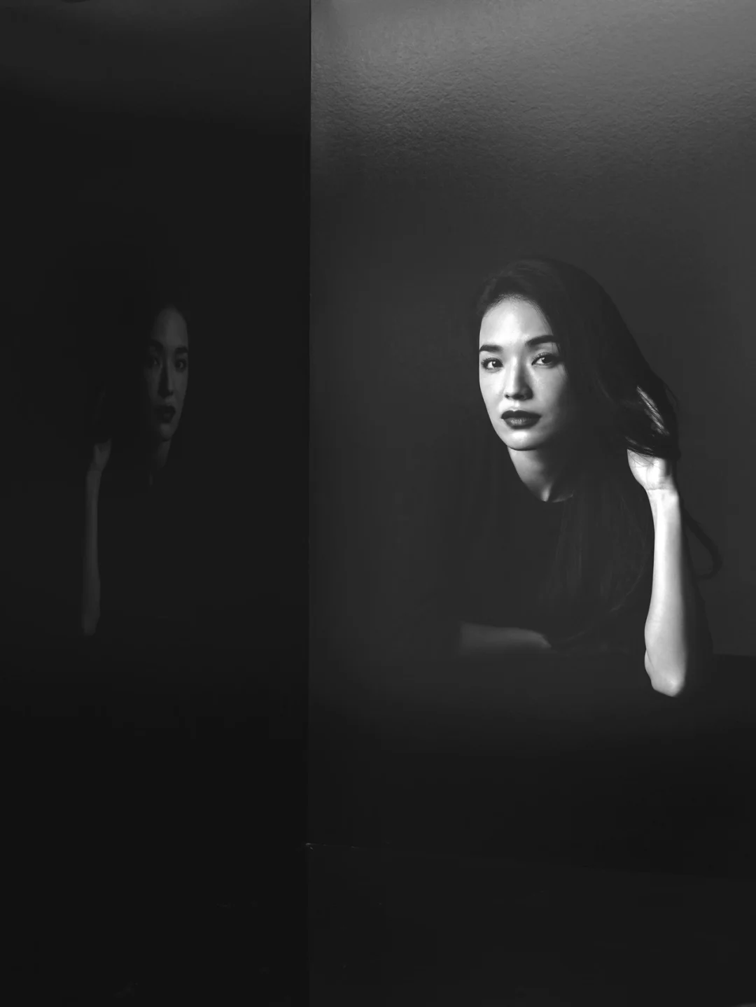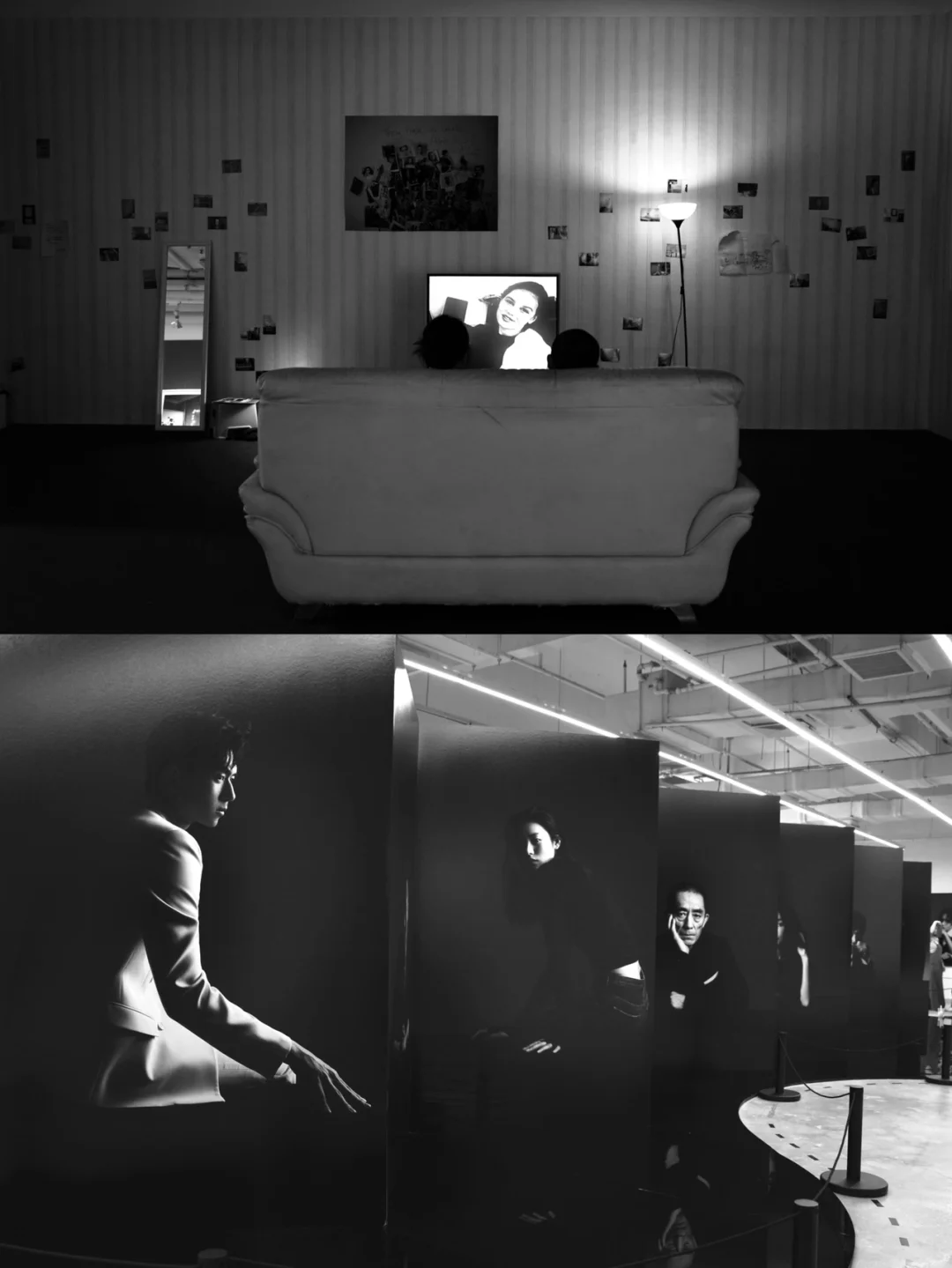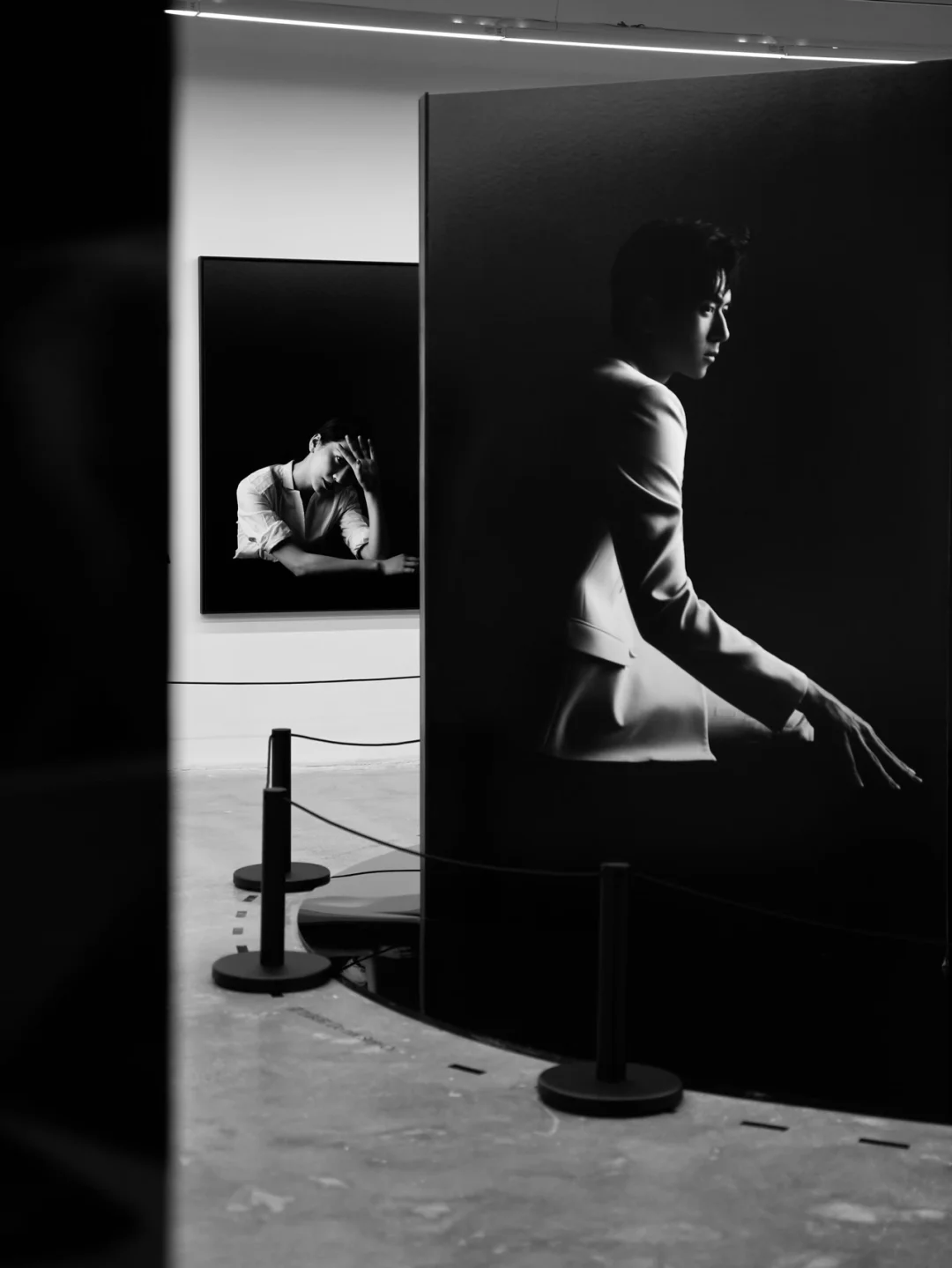 「回到黑色」系列走到尽头的小屋子里有【回到黑色影像交互装置】,还原了作品拍摄现场及光影,来到装置前⾃动触发拍摄,扫码可以获得明星同款照片[萌萌哒R]