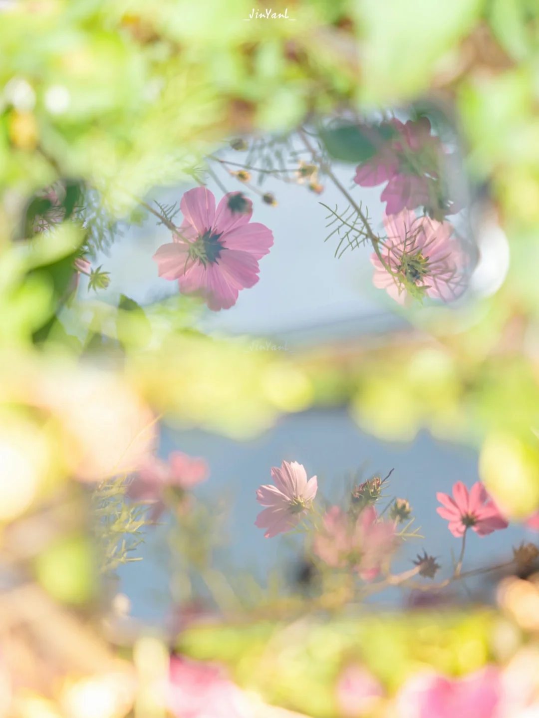 2⃣️ 用镜子或手机屏幕放在花丛里拍摄(如P7)
