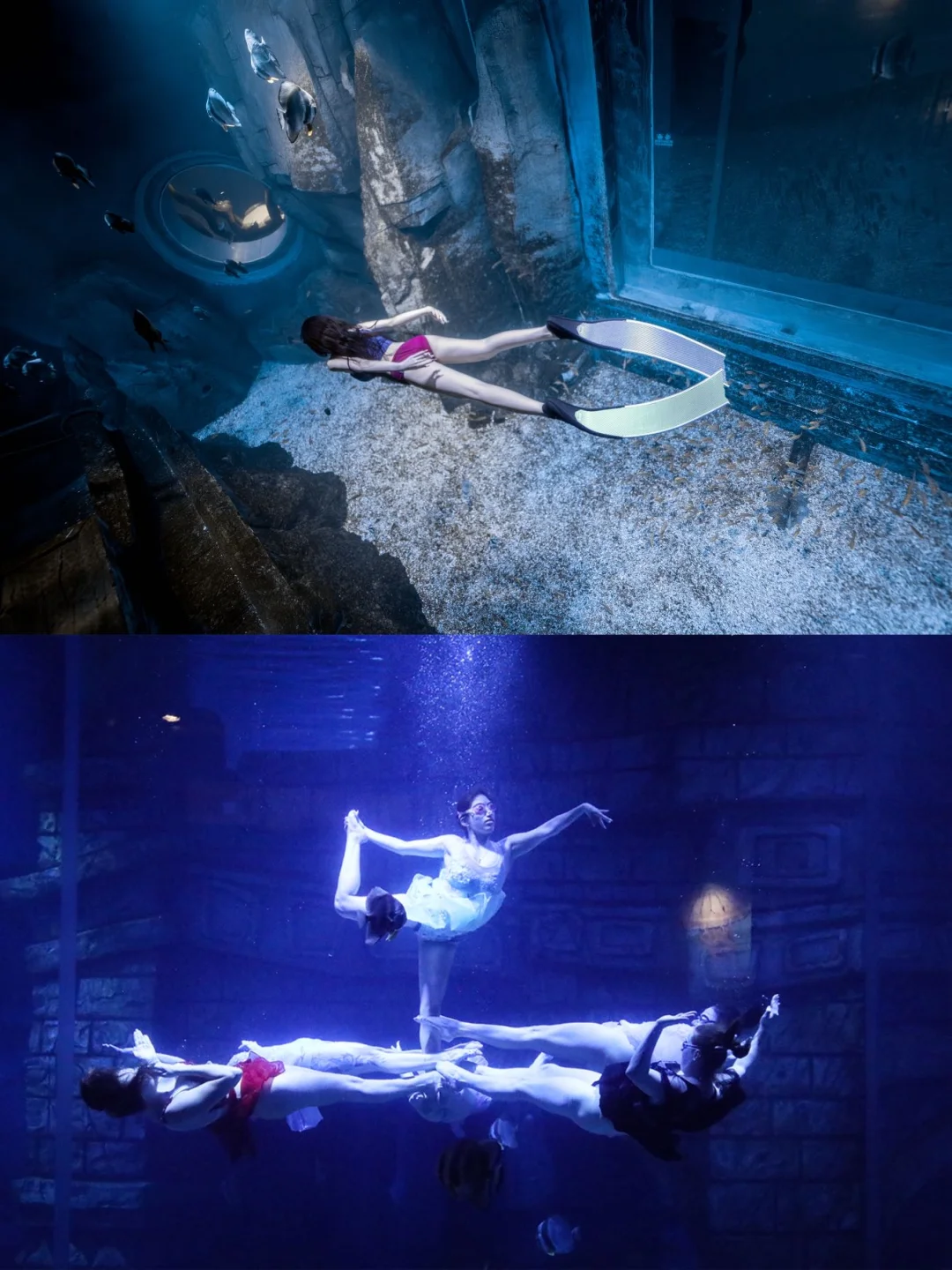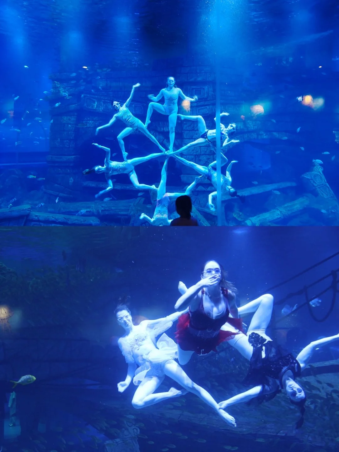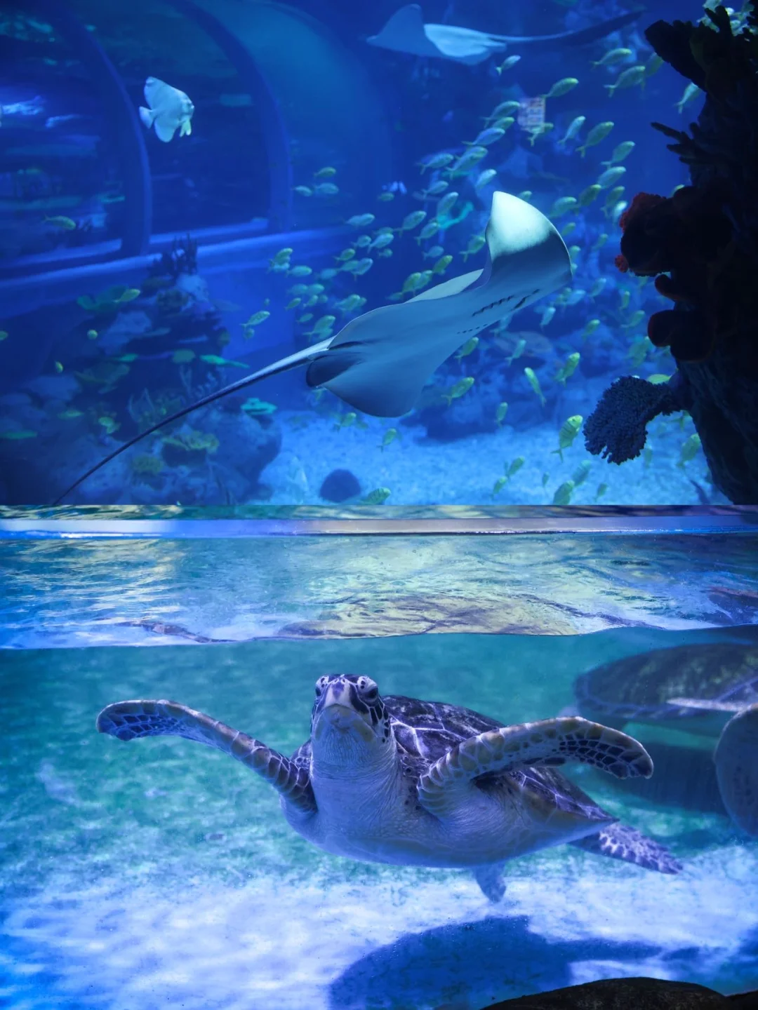 大海龟、小水母 、鲨鱼、水母、白鲸等从头顶游过,还有精彩的美人鱼表演🧜