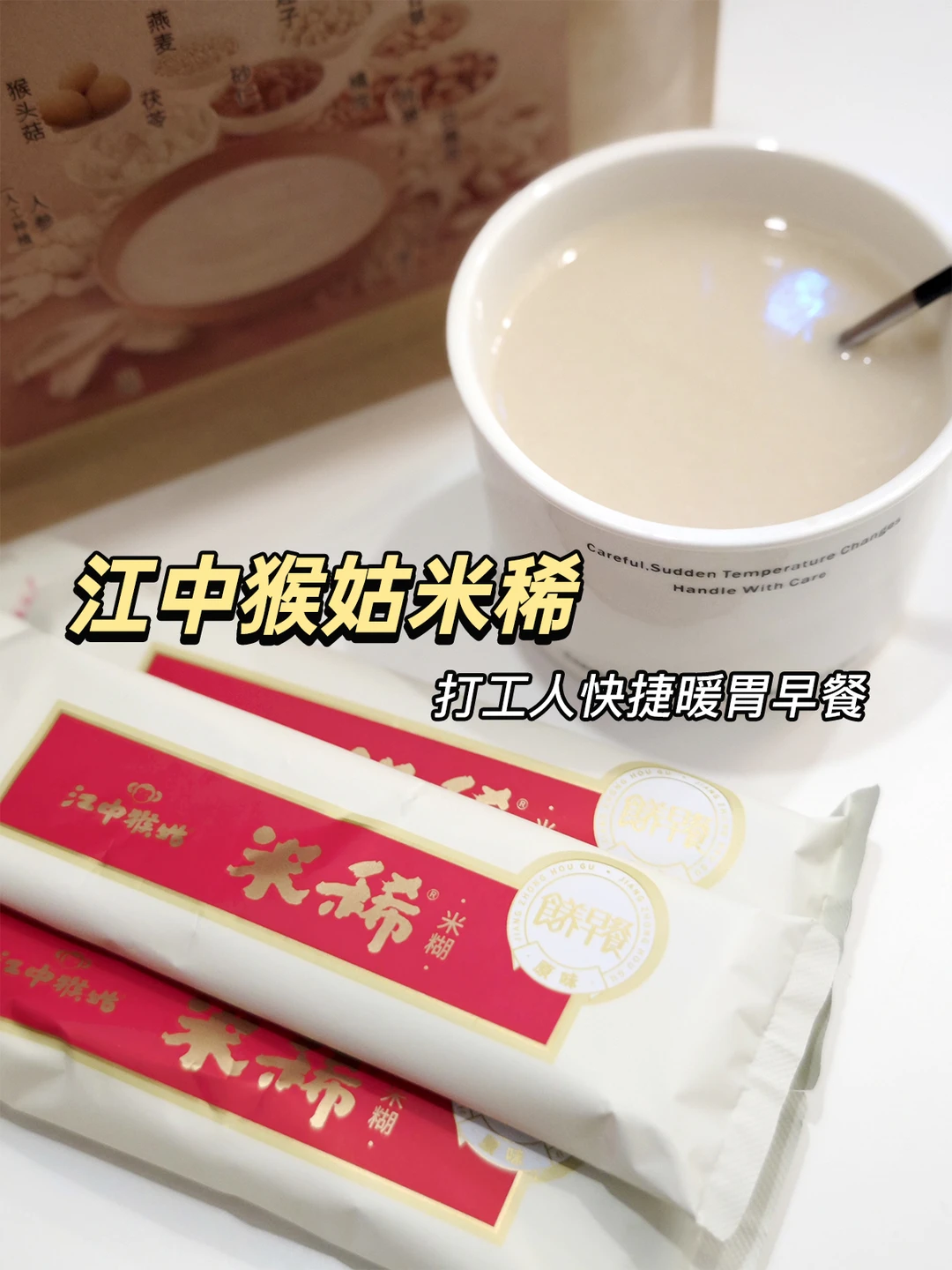 上班赶、早餐没空弄的朋友可以试试这个🥣江中猴姑米稀🥣,热水一冲1分钟就能吃,简单快捷还好吃,丝丝滑滑的口感,带着清淡的草本香气,一杯下肚舒舒fufu~