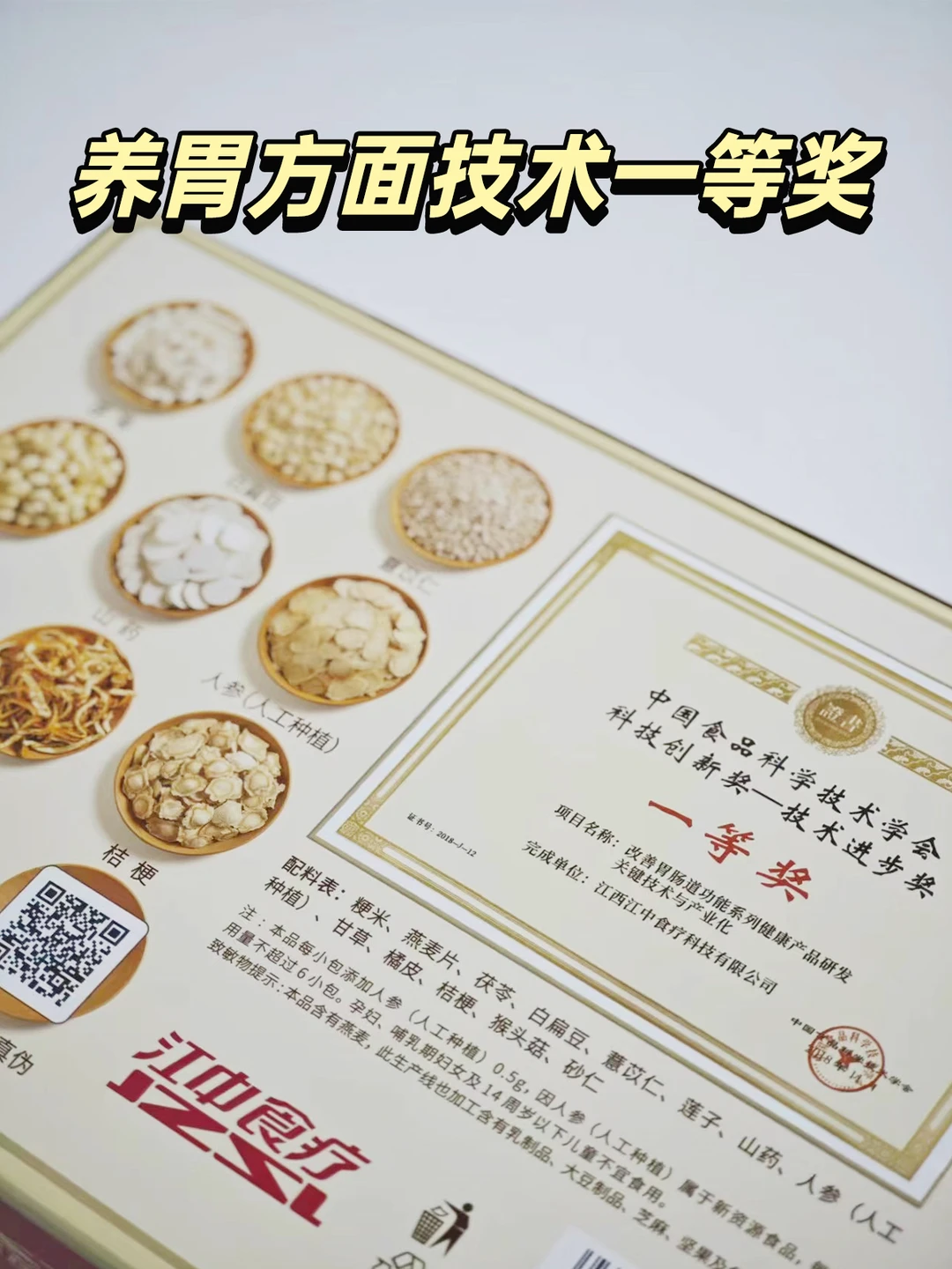 重点是它们家在养胃方面很专业,获得过养胃方面技术一等奖!配方源自千年养胃古方《参苓白术散》,配料表很干净,都是茯苓、山药、莲子、猴头菇等益胃食材。