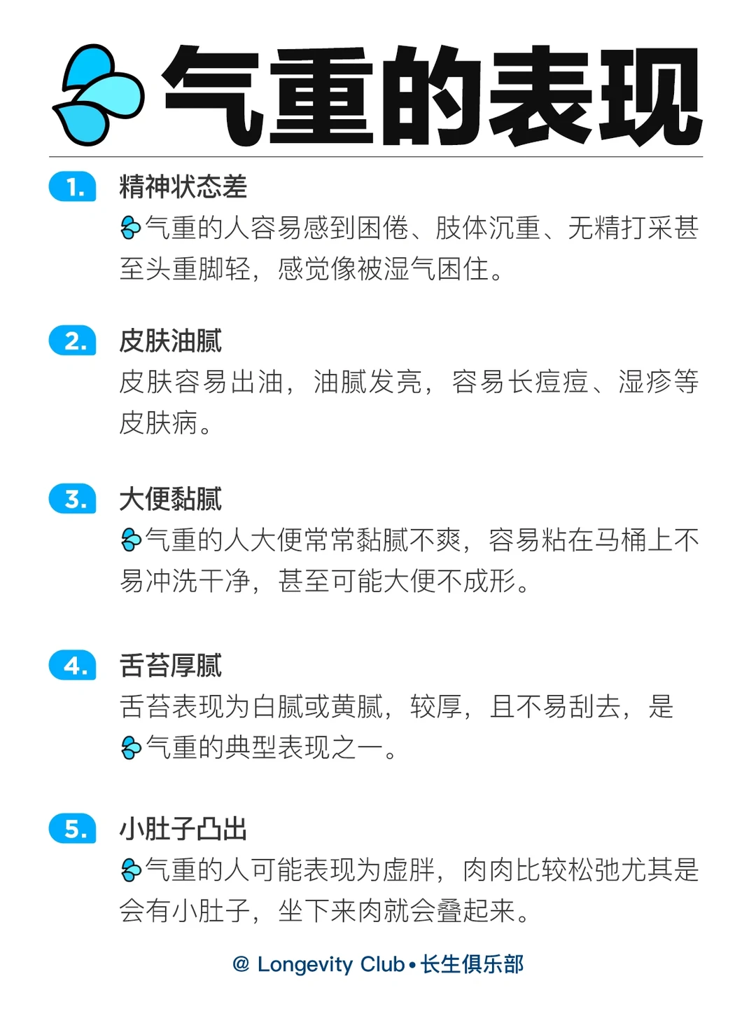 当体内💦气重,精神状态就会差,容易感到困倦、肢体沉重、无精打采甚至头重脚轻,大便常常黏腻不爽,容易粘在马桶上不易冲洗干净,甚至可能大便不成形。舌苔表现为白腻或黄腻,较厚,且不易刮去。更惨的是全身都不算胖就小肚子凸出。如果各位打工人有这些情况,说明你很💦💦💦了哦