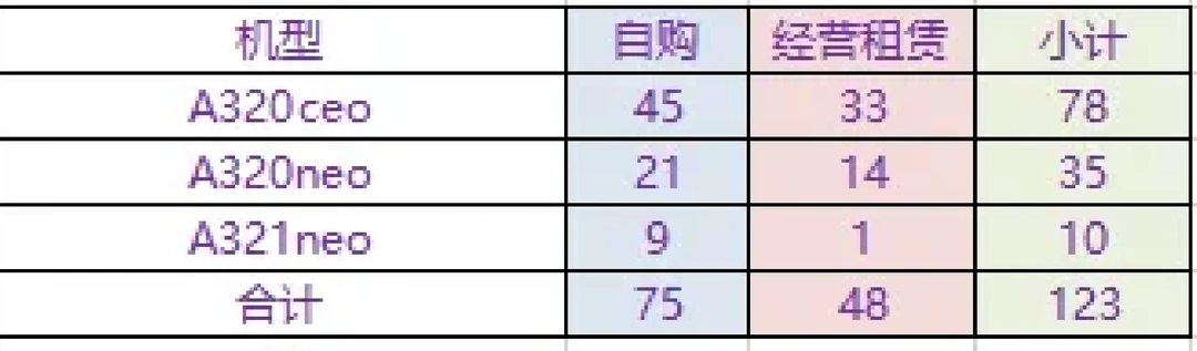 截止2024年2月末,春秋航空共运营123架空客A320系列飞机。