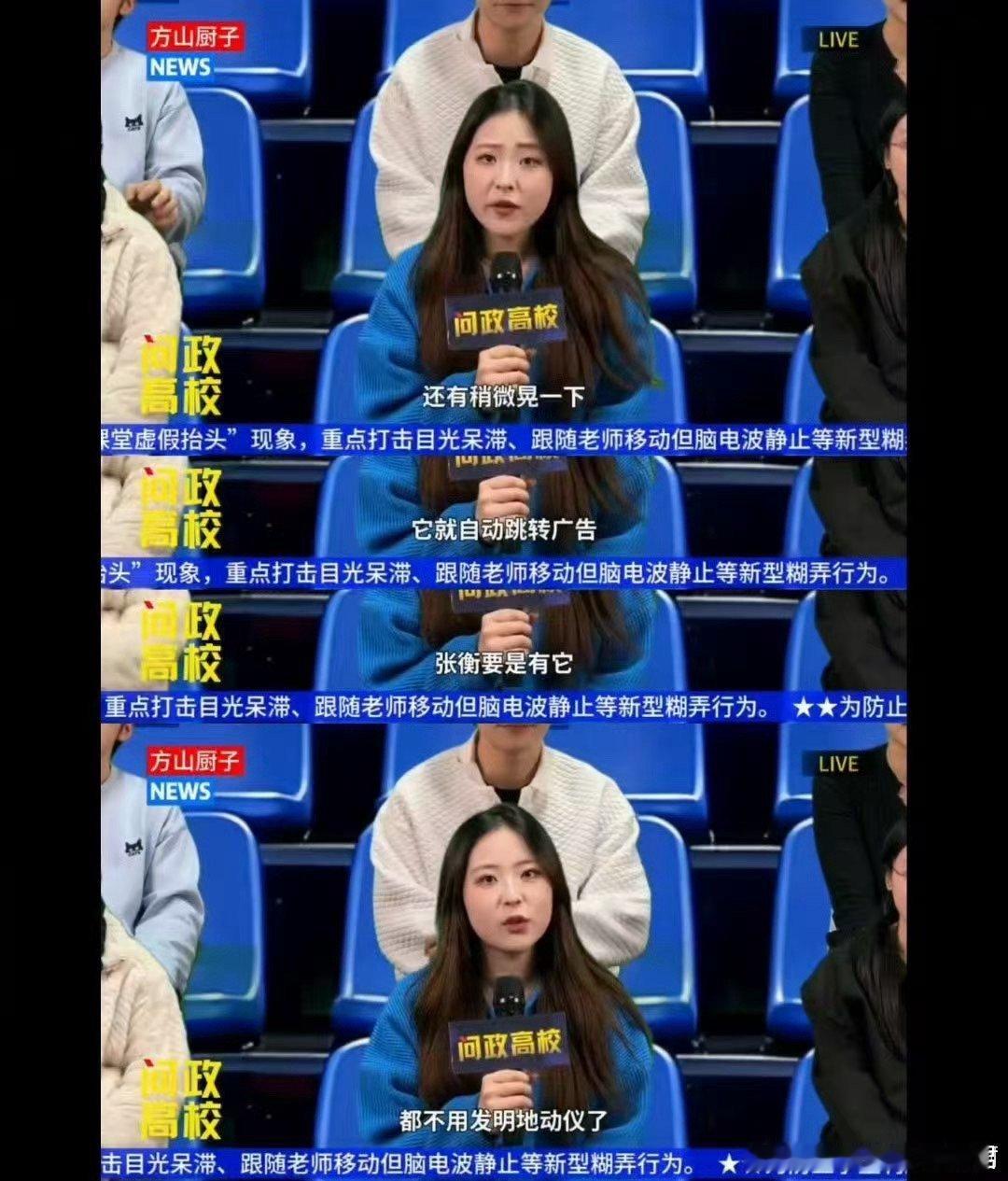 洗澡洗一半系统崩溃谁懂上课签到必须定点打卡,晚一秒算旷课。懂了,以后带着GPS上学,信号不好直接挂科是吧?《问政高校》太真实了,笑着笑着就哭了。