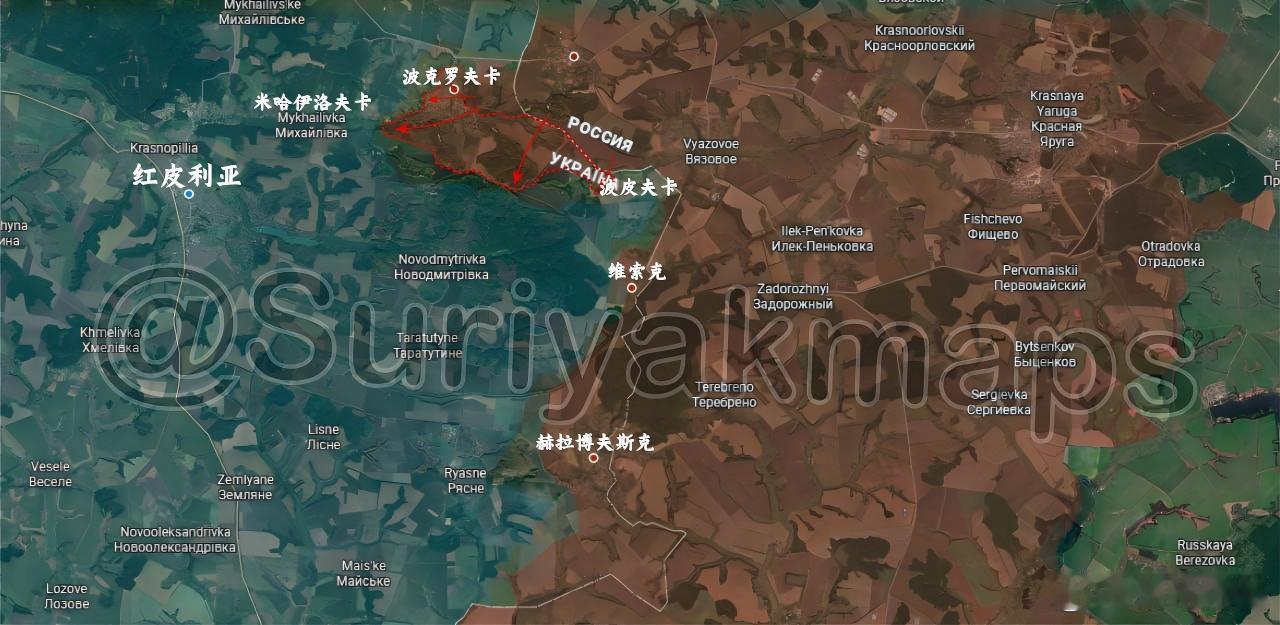 乌苏继续嘘嘘2.15-16俄乌局势1、苏梅:俄罗斯军队成功完全控制了波克罗夫卡以及边境附近的一系列阵地,直逼米哈伊洛夫卡郊区。2、库普扬斯克:俄军继续将乌克兰军队从皮沙内以北阵地驱赶出去。3、红利曼:俄罗斯军队在德罗比舍韦以东取得一系列胜利,控制了该方向的多个阵地。4、塞弗尔斯克:俄罗斯军队继续在扎基特内以南推进,巩固新阵地,并继续将乌克兰军队从里兹尼基夫卡赶出。此外,俄罗斯军队在北顿河附近的高地包围了部分乌克兰士兵,渗透并控制了克里瓦卢卡以东的部分阵地。5、顿河君士坦丁罗夫卡:乌克兰军队在恰索夫亚尔的舍夫琴卡区展开新行动,再次挑战长期以来被视为既定事实的俄罗斯对该城市的完全控制权,目前乌克兰对西郊垃圾处理厂的控制权也得到确认。同时,俄军从南部向切尔沃内渗透,另一方面继续向顿河君士坦丁罗夫卡西南部渗透,不仅向尼斯基胡季尔区,还有贝雷斯托维区推进。6、波克罗夫西克:水獭村再次被乌克兰军队控制。该地区与嗨村、新奥列克桑德里夫卡和奥列克西夫卡一样,内部几乎没有俄罗斯驻军,鉴于这种情况,可以被视为处于灰色地带。乌克兰军队抵达扬丘尔河,但遭到俄罗斯军队的抵抗。尽管乌克兰军队不断发动攻击并在布拉特西克克、兹拉霍达、维什涅夫和韦尔博夫实施渗透,俄罗斯军队仍成功阻止了乌克兰的推进。7、胡里艾伯勒:俄罗斯军队继续行动,攻占了茨维特科韦村,同时仍在继续向西推进,以确保铁路线以东所有阵地的安全。8、沃斯里夫卡:乌克兰军队继续加强攻势,在重新夺回特捷普诺吉尔西克北郊一系列阵地后,乌克兰军队利用防线漏洞发起新一轮进攻,成功渗透到皮拉夫尼。来源:suriyakmaps俄乌局势新进展特朗普回应是否抓捕普京普京称已无兴趣等乌方从占领区撤出