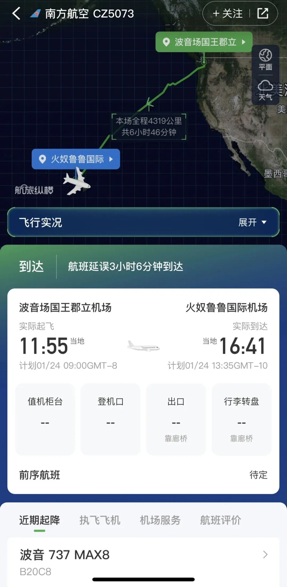 该飞机于美国东部时间下午2:56从波音西雅图工厂起飞,调机航班号CZ5073,预计将于北京时间1月25日晚抵达国内。