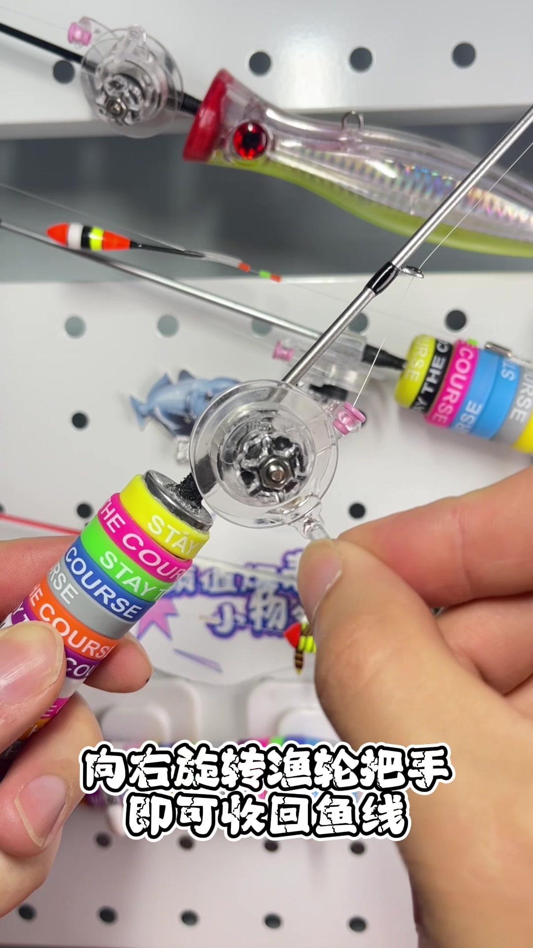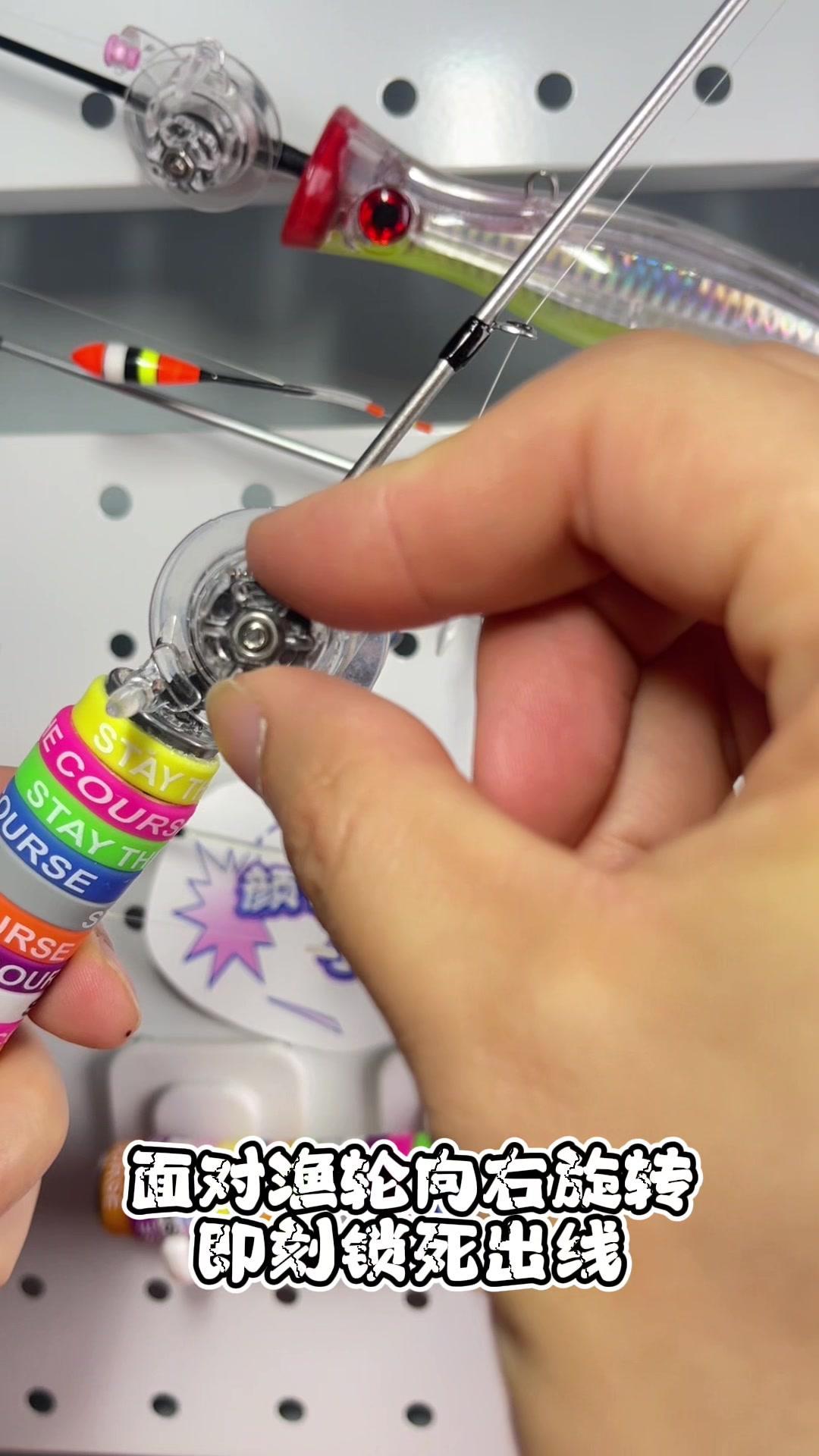 1️⃣面对鱼轮,向左旋转数圈即可拉出鱼线,坐钓。 2️⃣面对鱼轮,向右旋转即可锁死,出现向右旋转渔轮把受,即可收回鱼线。 3️⃣欣赏双拼色杆身,简约时尚。 4️⃣瞧瞧这可爱的旋转浮漂,还不赶快来只迷你小物杆耍耍。