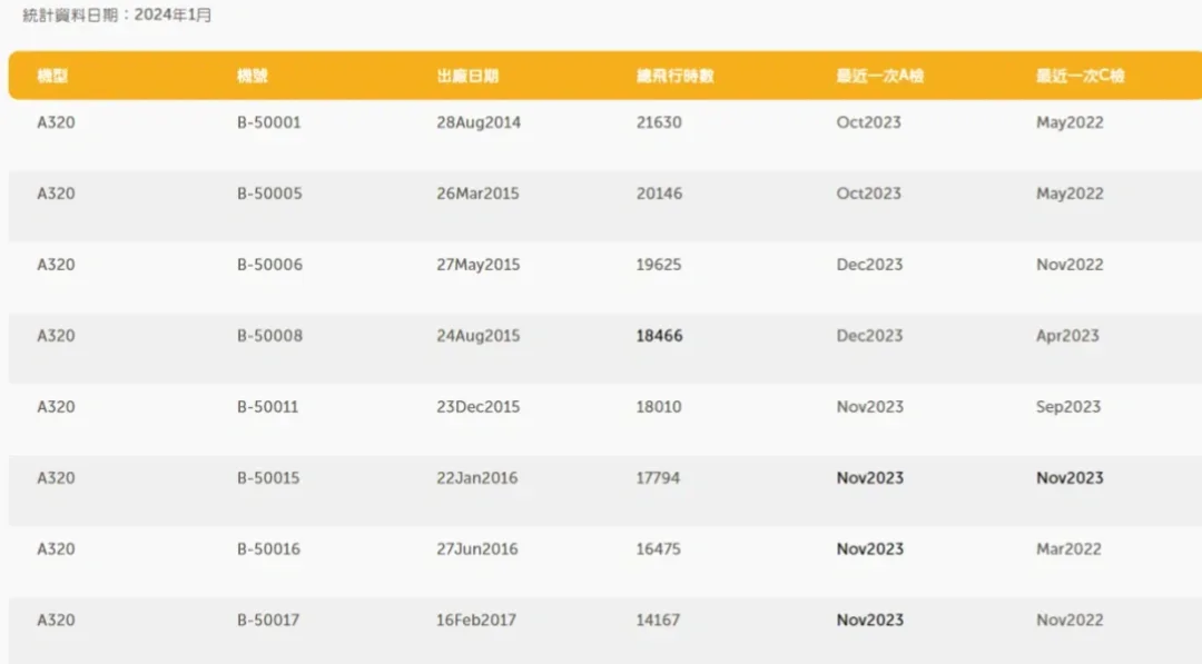 有意思的是,台湾虎航在其官网上公布了其机队的详细资料,甚至连A检、C检的时间都公布。