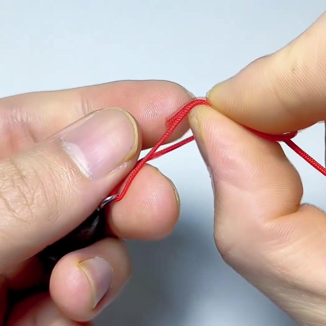 2️⃣绕第二个圈后,把线头从中间穿过,形成一个漂亮的“活扣”,这样后续更容易解~
