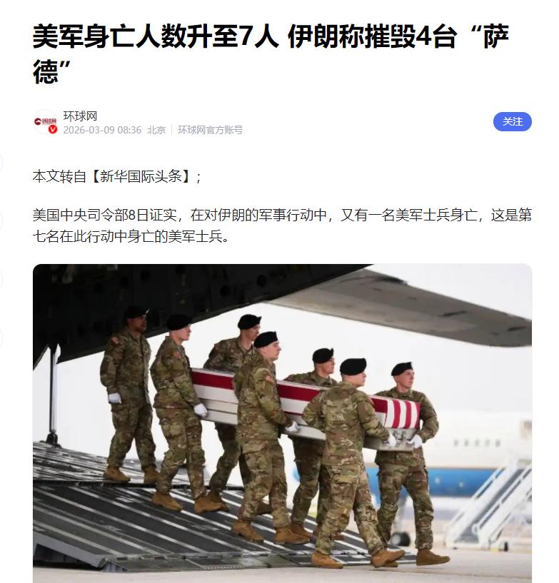 另一件是美国方面说,他们在和伊朗的打仗过程中,已经有7名美军士兵死了。