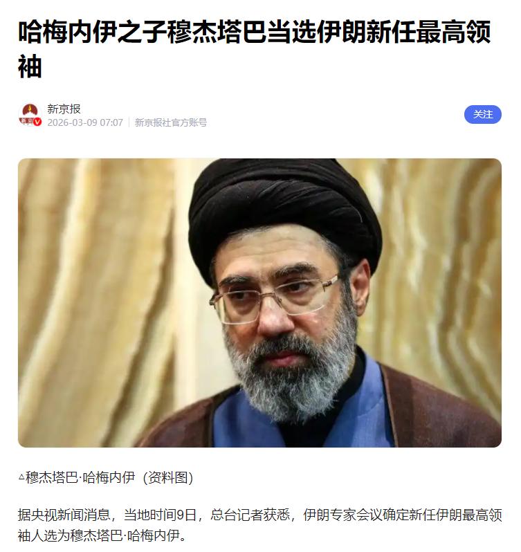 据央视新闻报道,当地时间9日,伊朗专家会议正式定了哈梅内伊之子穆杰塔巴当新领袖,这事儿不光伊朗人关心,全世界都在看。