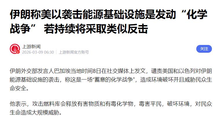 3月8号那天,他们的外交部发言人巴加埃发文,骂美以的行为不是普通的打仗,而是故意搞“化学战争”,既破坏环境,还害伊朗老百姓的命。