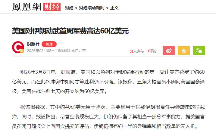 这只是开始,再打下去,美国只会更缺钱、更被动。咱们普通人也能看明白,打仗从来都不划算,不管哪一方,最后都得付出大代价。