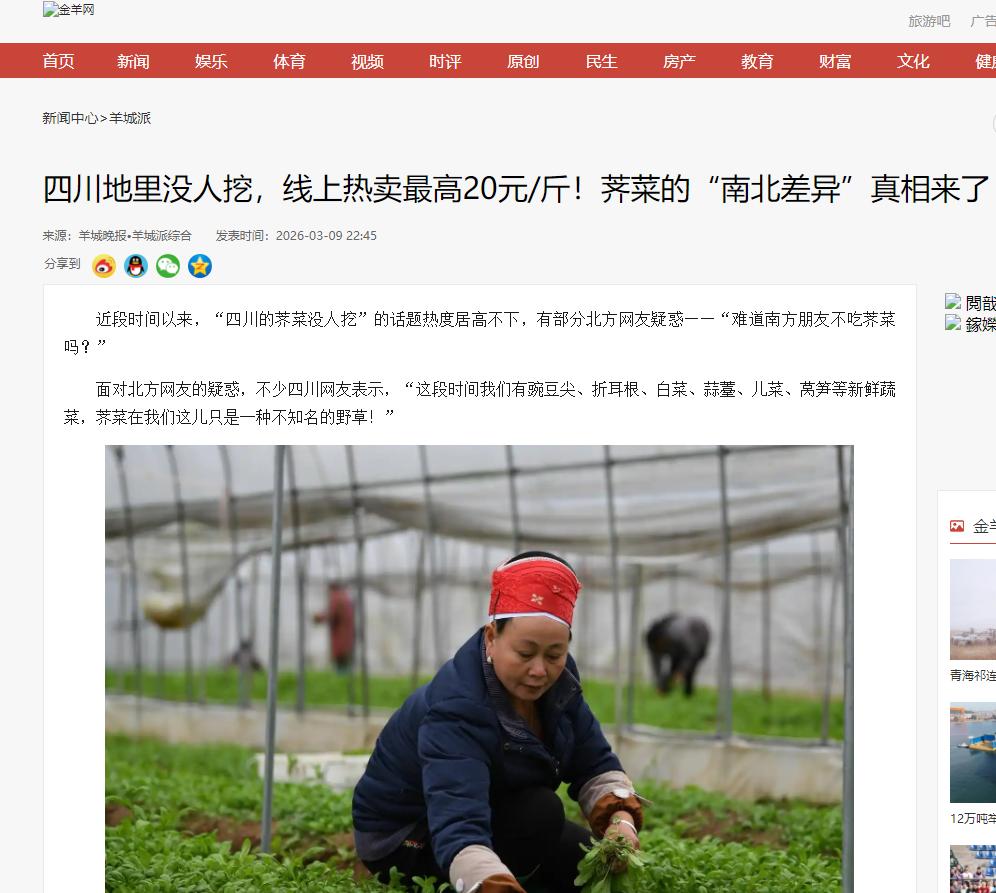 四川地里的荠菜没人挖,线上却卖20元1斤?