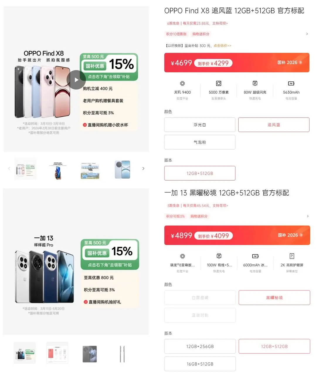 购机建议的话,我推荐你们重点看已发布但未涨价的机型,比如Find X8、一加13这些旗舰,现在入手等于中端预算拿旗舰配置💪尤其512G/1TB大容量版本,现在不买等涨价了真的会哭😭也可以看看新款未调价的Find X9系列、Reno15系列等,反正“早买早享受”真不是开玩笑啦,想换机的朋友抓紧冲~
