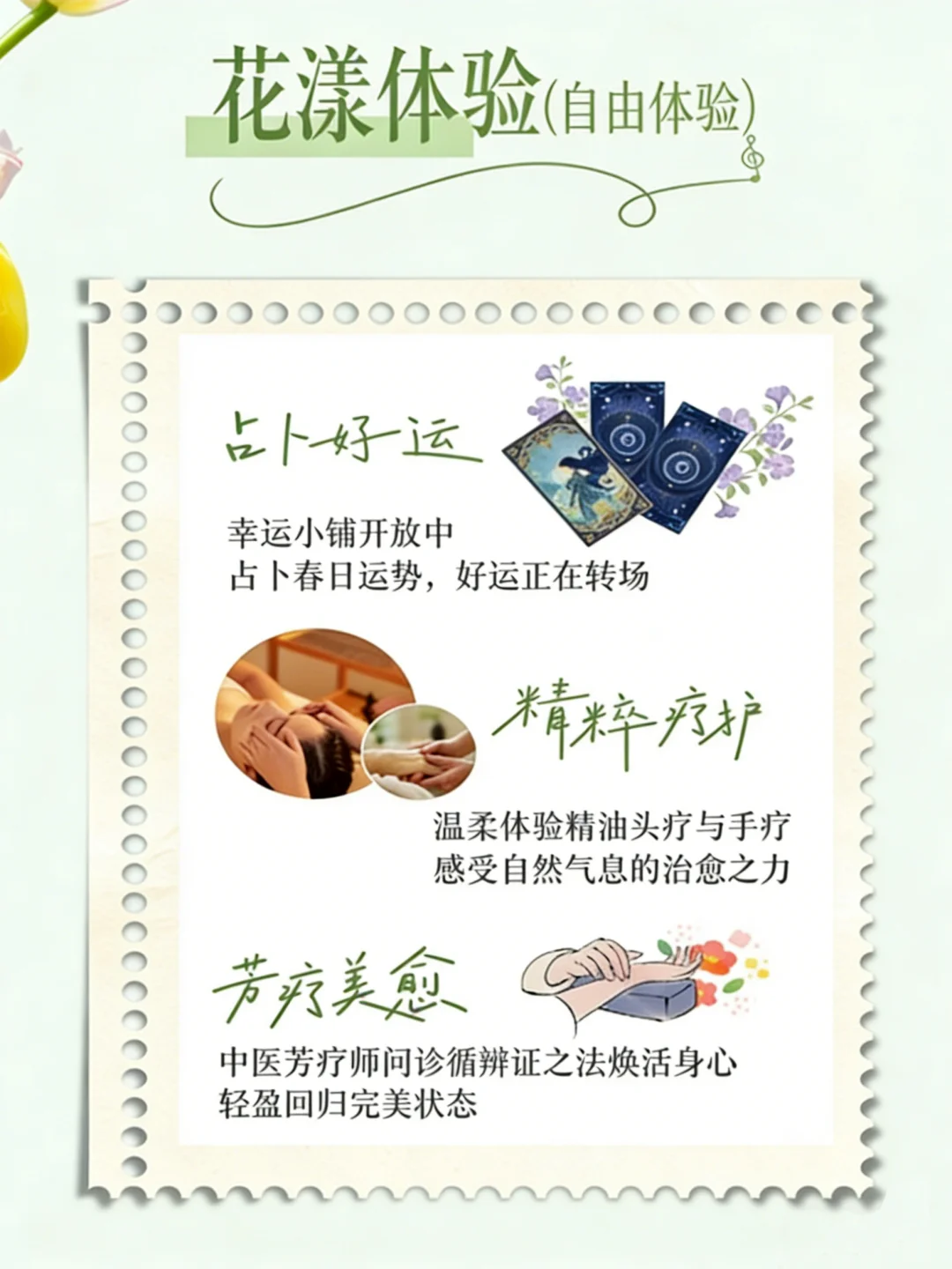 🌿 【精粹疗护 | 沉浸式头疗与手疗】 是时候用自然的力量来治愈自己了。闭上眼睛,沉浸在精油头疗与手疗的温柔呵护中。这一刻,只属于放松的你。