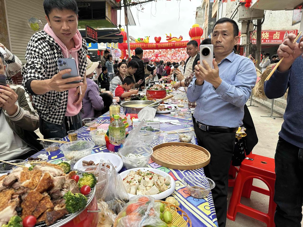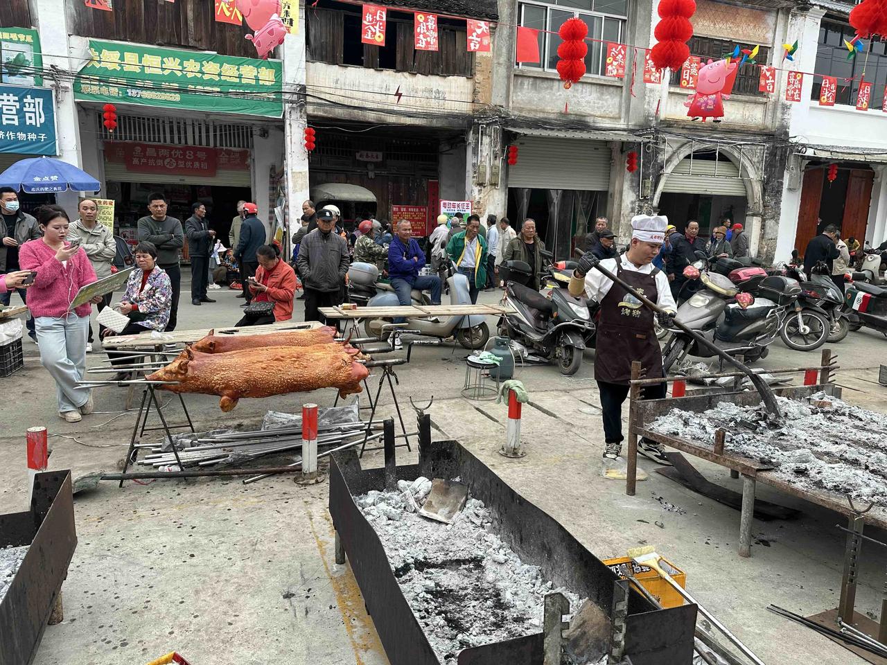 沉浸式体验:百米“长龙宴”上,演员扮成“猪八戒”“嫦娥”上菜,游客可参与“烤猪大比拼”投票。这种“美食+民俗表演”的模式极具传播力,相关视频全网点击量超百万。