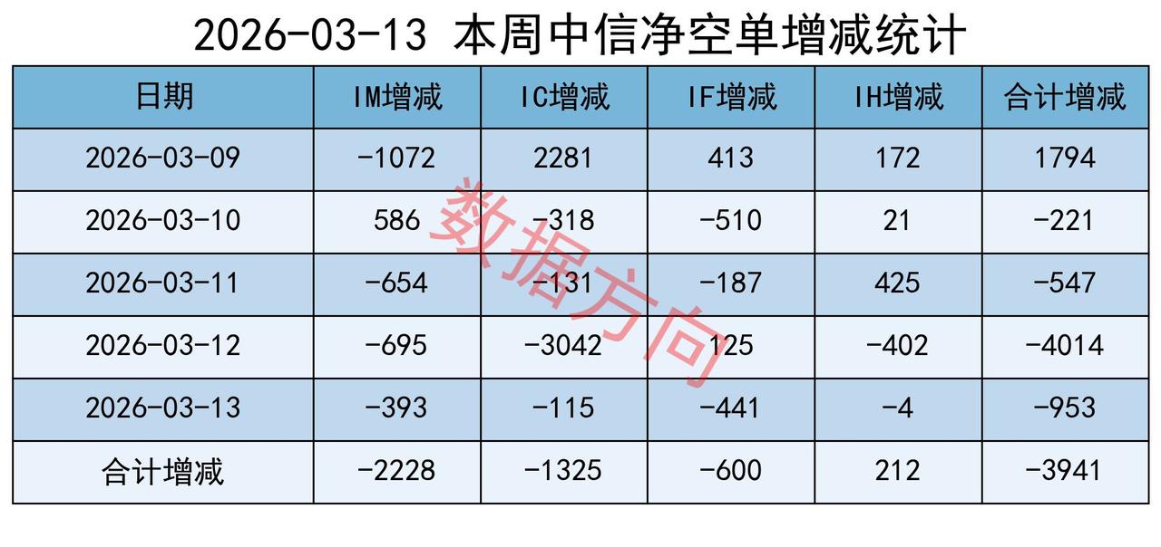 对期指数据复盘,继上周大幅减空近2万手后,本周继续大幅减空。