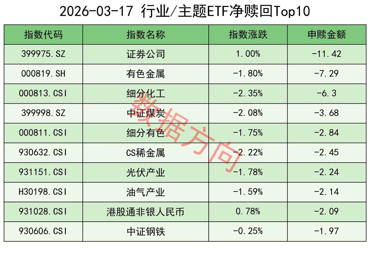 证券公司指数(-11.42亿)、港股通非银人民币指数(-2.09亿),一起进入赎回榜。
