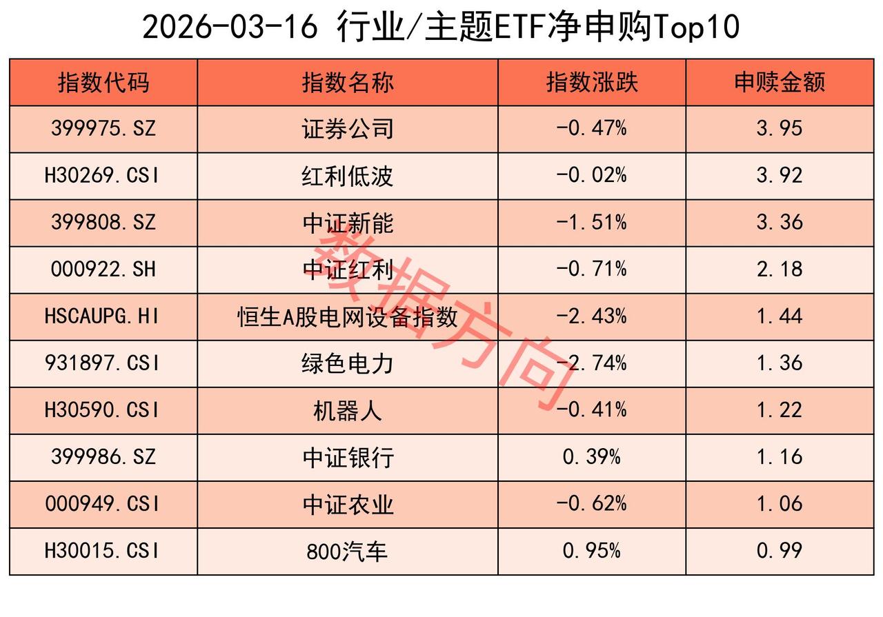 证券公司指数(3.95亿),获最多净申购;港股通非银人民币指数(-2.09亿),进入赎回榜。