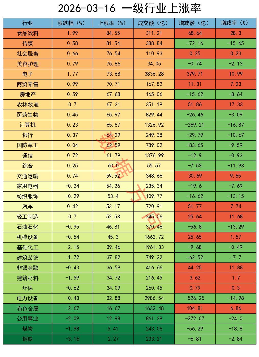 电子,涨幅1.77%,个股上涨率74%,放量11%