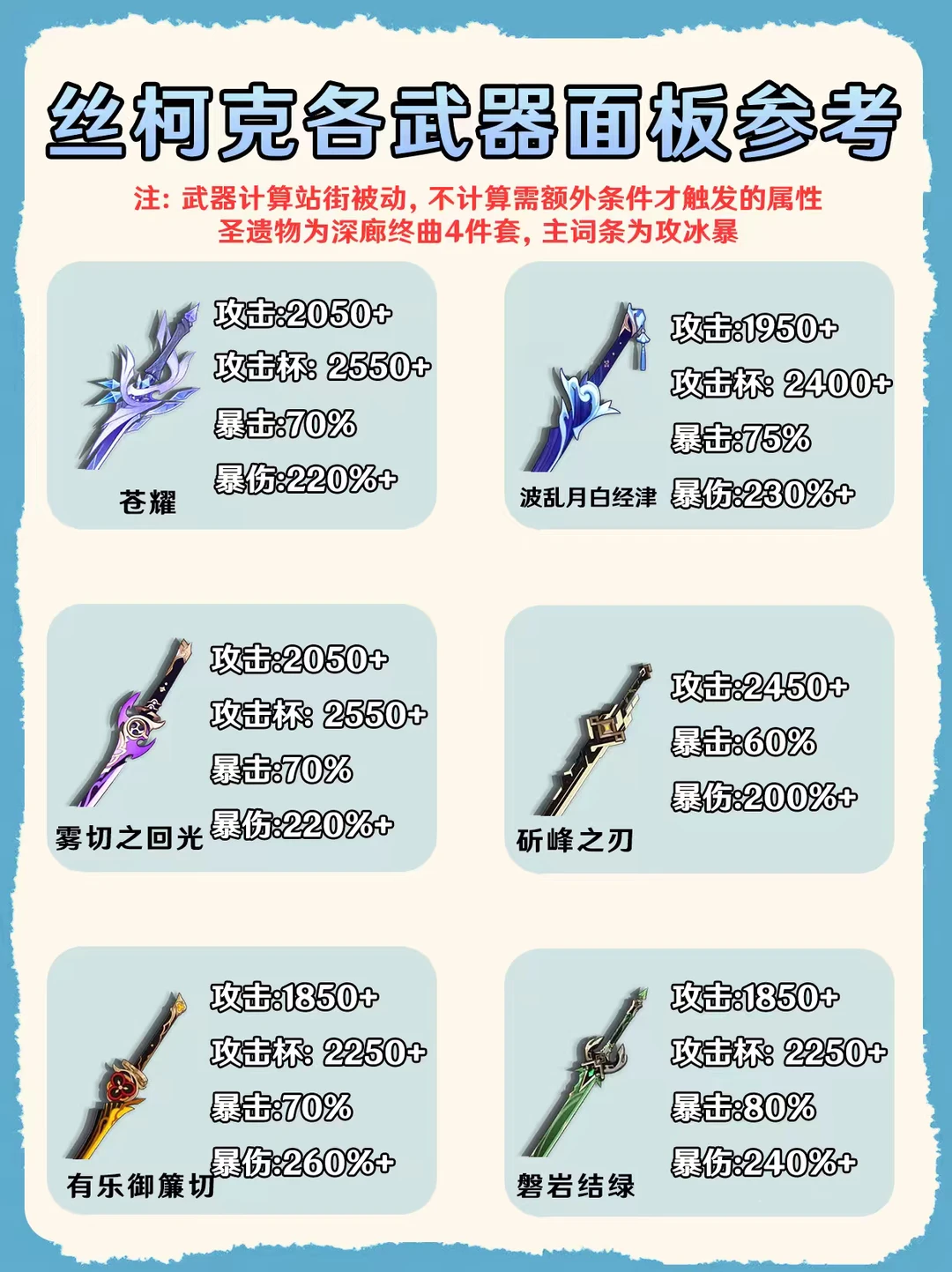 原神丝柯克不同武器面板参考攻略!