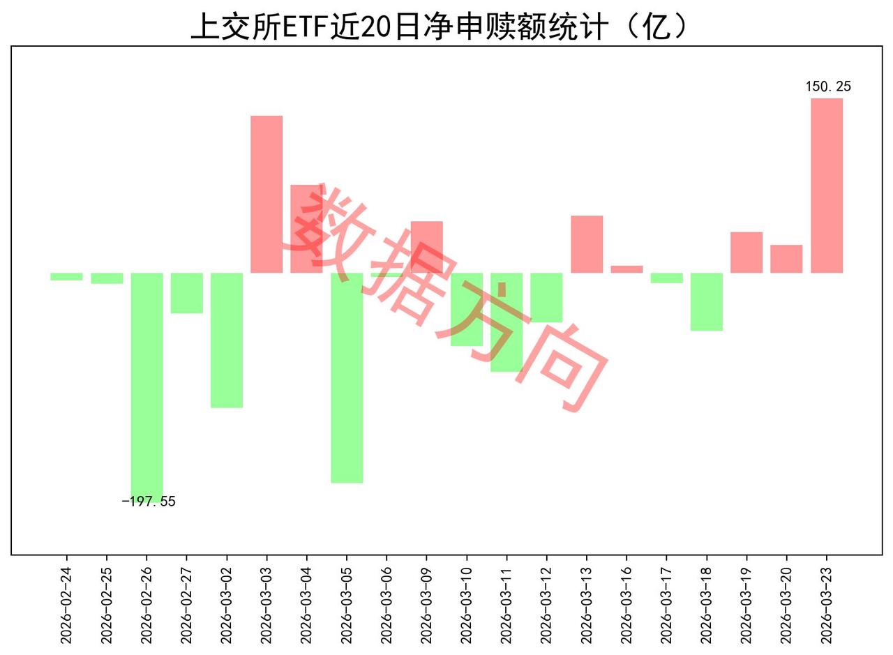 上证指数跌幅3.63%,上交所ETF合计净申购 150.25亿元。此金额不小,上一次单日净申购大于今天发生于4个月之前,去年的11月21日。