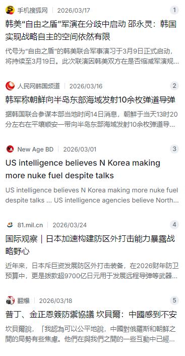 从时间线来看,这一轮紧张局势的导火索很清楚:3月9日美韩启动“自由之盾”军演,3月10日金与正发谈话警告,3月14日朝鲜发射10余枚导弹,3月中旬美国情报报告放出核试验风声,3月底日本部署远程导弹。一环扣一环,几乎没有留出任何外交缓冲的时间。这种节奏,很像是一场事先编排好的对抗剧本,谁都不愿意先停手。