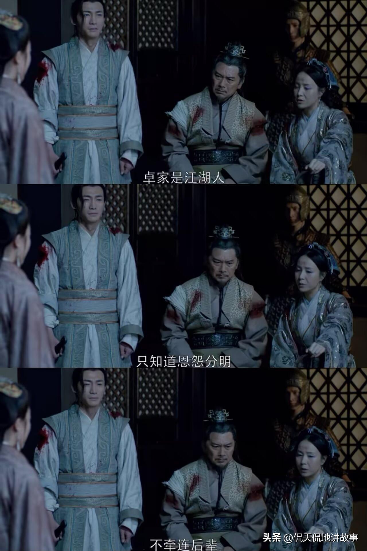 卓家被谢玉欺骗二十多年,亲生儿子刚出生就替景睿殒命,全家沦为杀人利器,到最后还被谢玉赶尽杀绝。血海深仇摆在眼前,她却始终守着底线:宫羽前来请罪时,她清楚祸不及未出世的孩童,一句“纵然心头再恨,拿你的命又能解几分”,直接断了滥杀无辜的可能,恩怨分明,不迁孤女,这是刻在骨子里的善良。