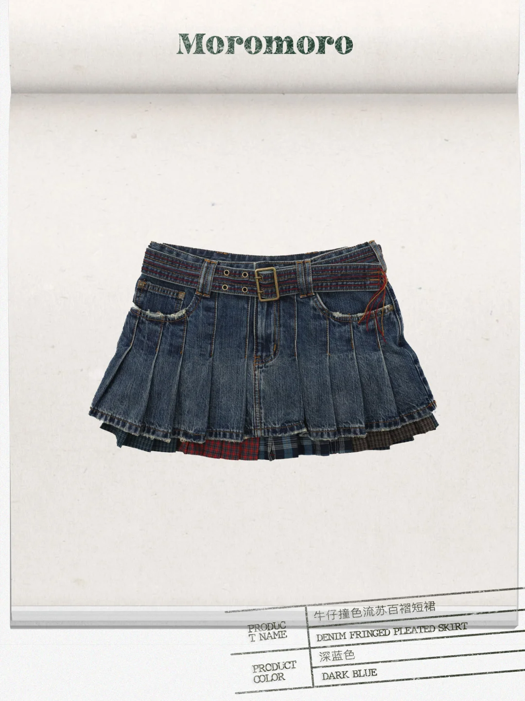 感谢Isa上身 *牛仔撞色流苏百褶短裙