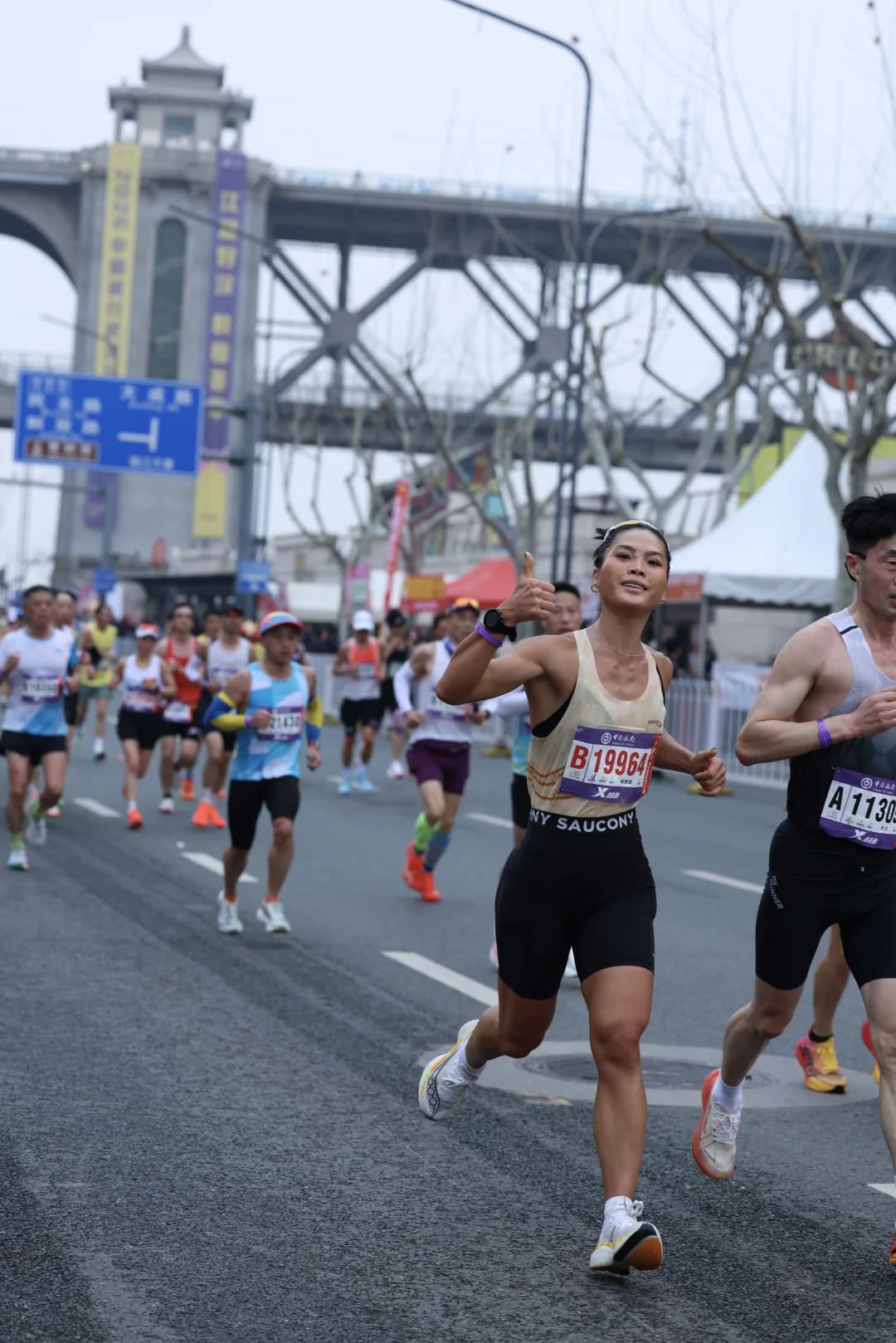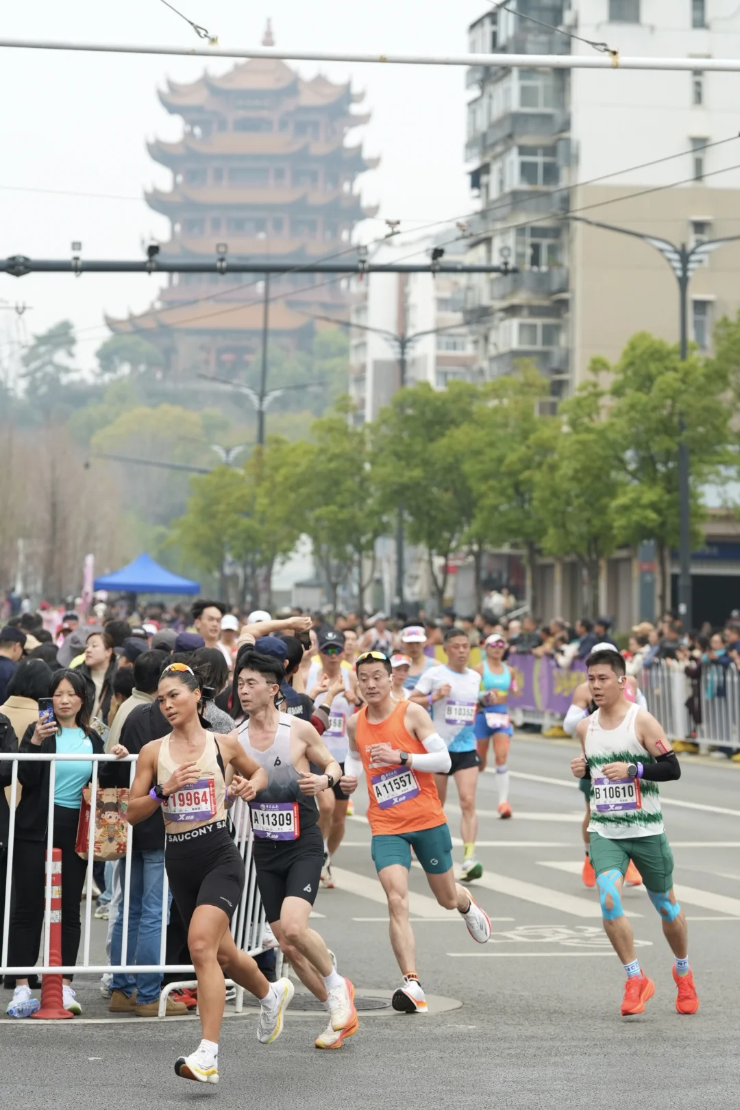 用跑步的方式跟黄鹤楼合照咯