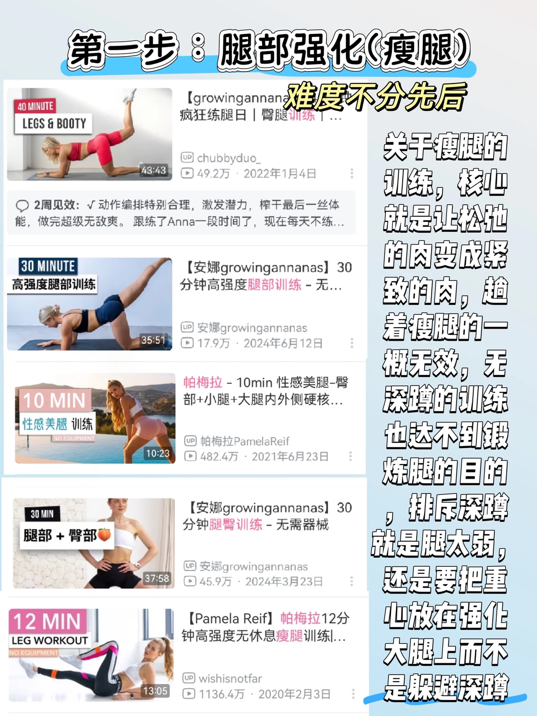 安娜的臀腿对腿的力量要求极高,腿没力气根本跟不下来,前期腿会充血,这时候不要吃高油盐的食物,很容易水肿,会让人下意识觉得自己“壮”了!