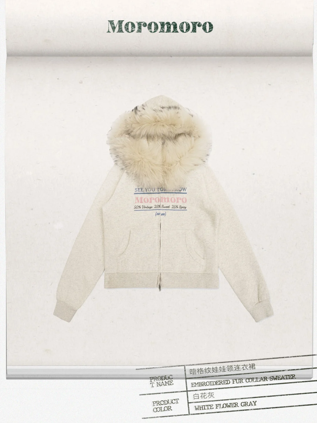 感谢上身* 撞色刺绣毛领卫衣