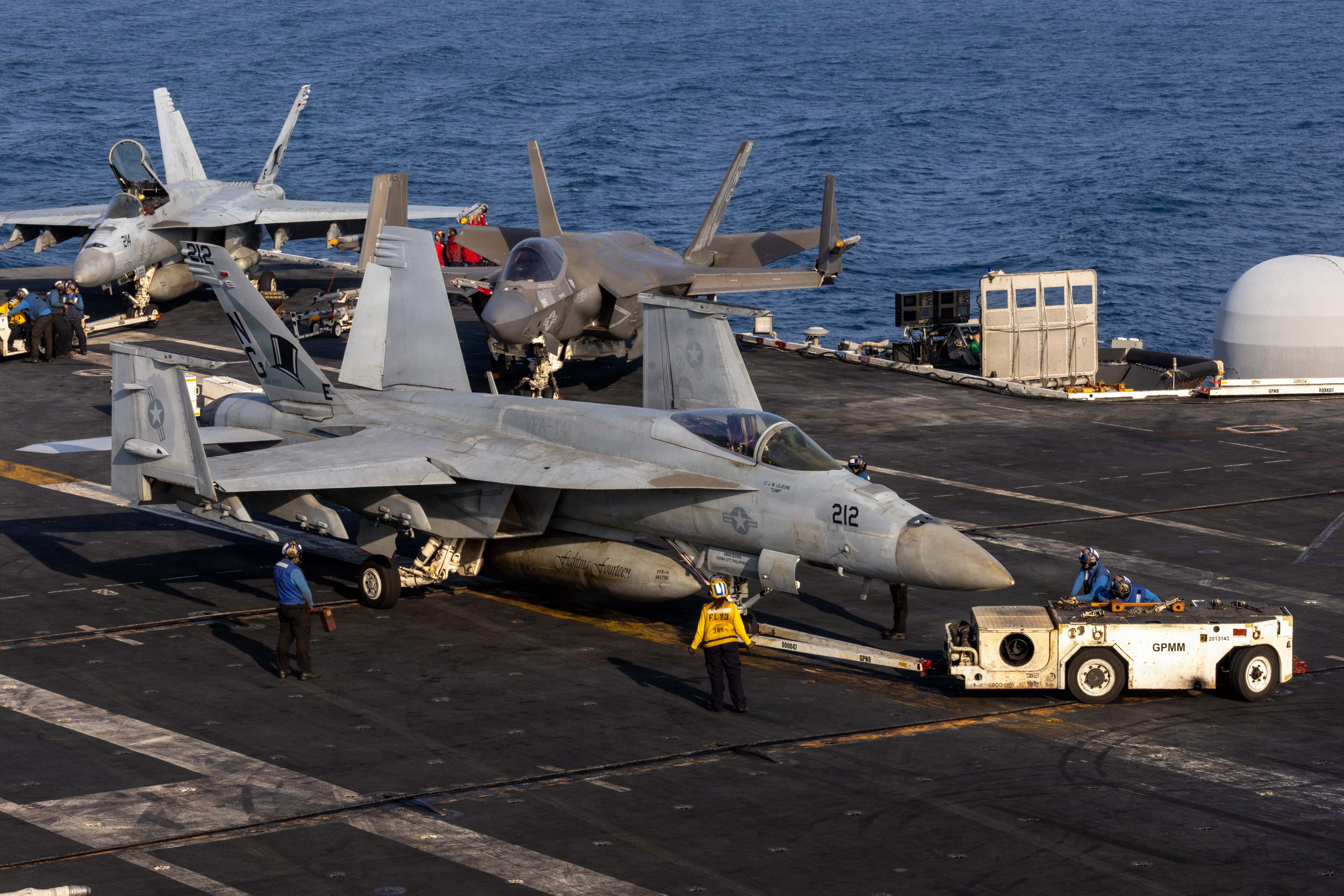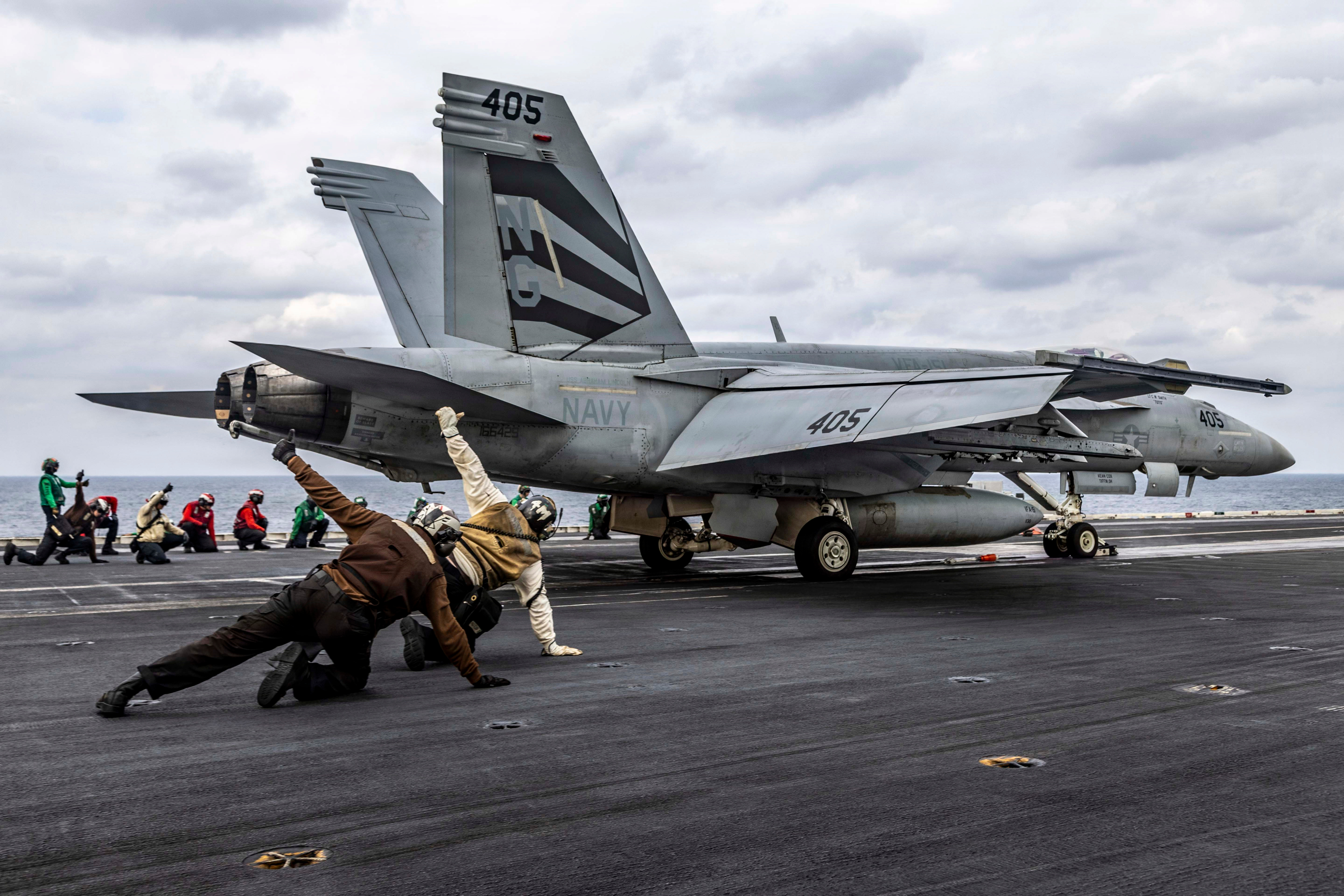 正在中东参加对伊朗作战行动昼夜出击的“亚伯拉罕·林肯”号(CVN-72)上第9舰