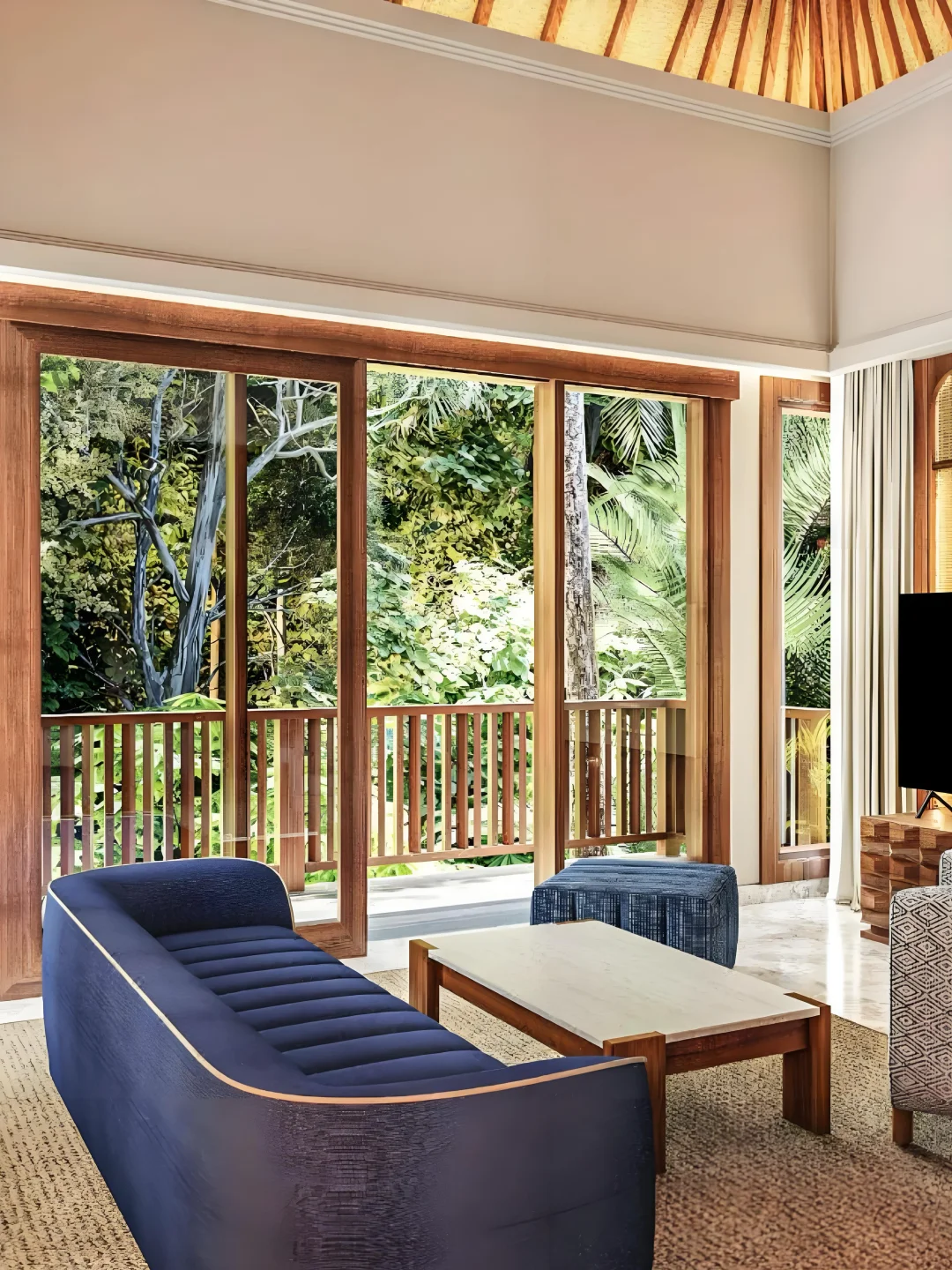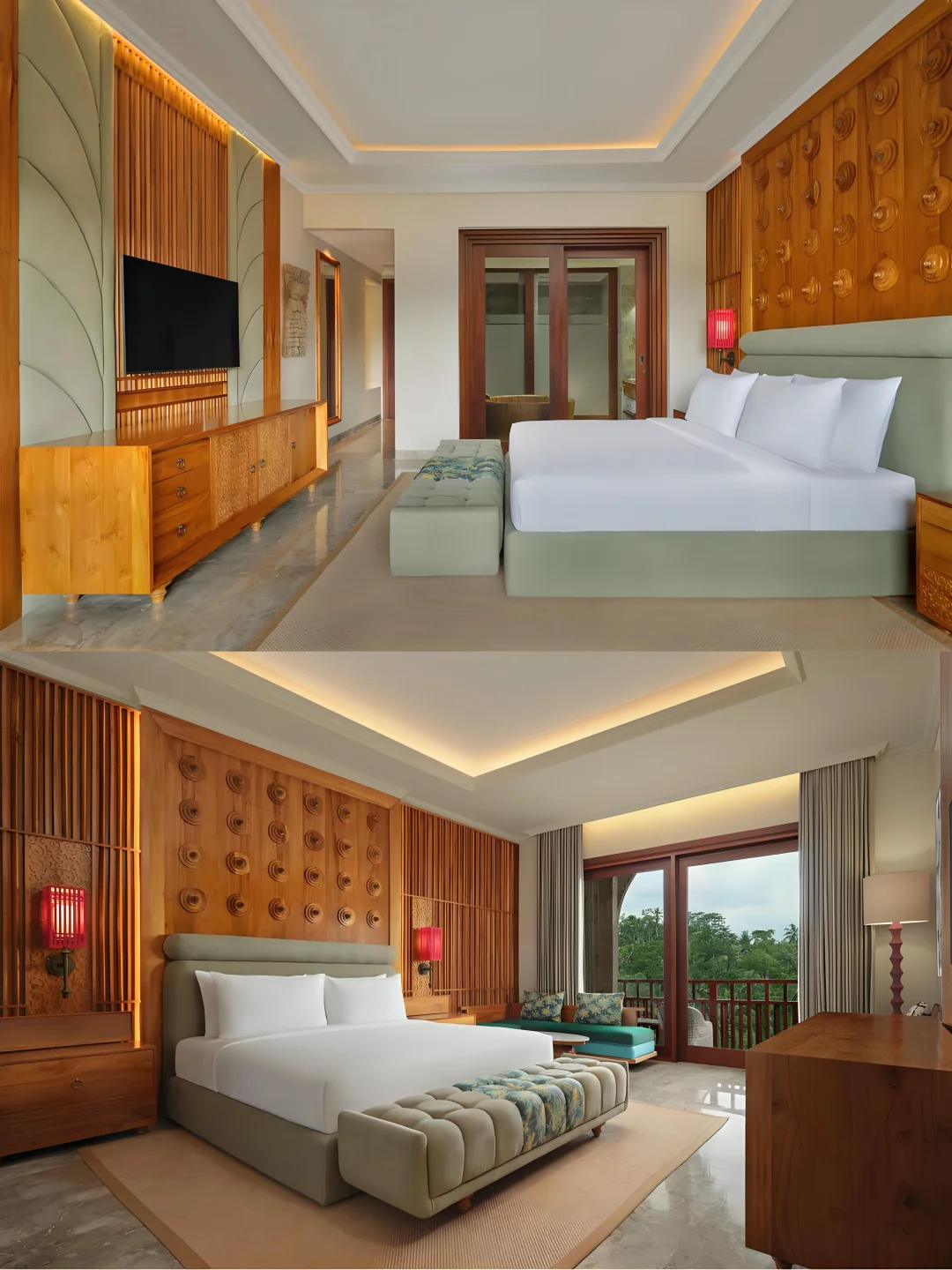 🛏️一卧室全景套房!酒店依山而建,公区的无边泳池正对苍翠山谷🍃,视野很好!整体是现代设计融合巴厘岛风情,加上2026年初才开业,设施非常新。酒店房间数量不多,空间宽敞不拥挤。
