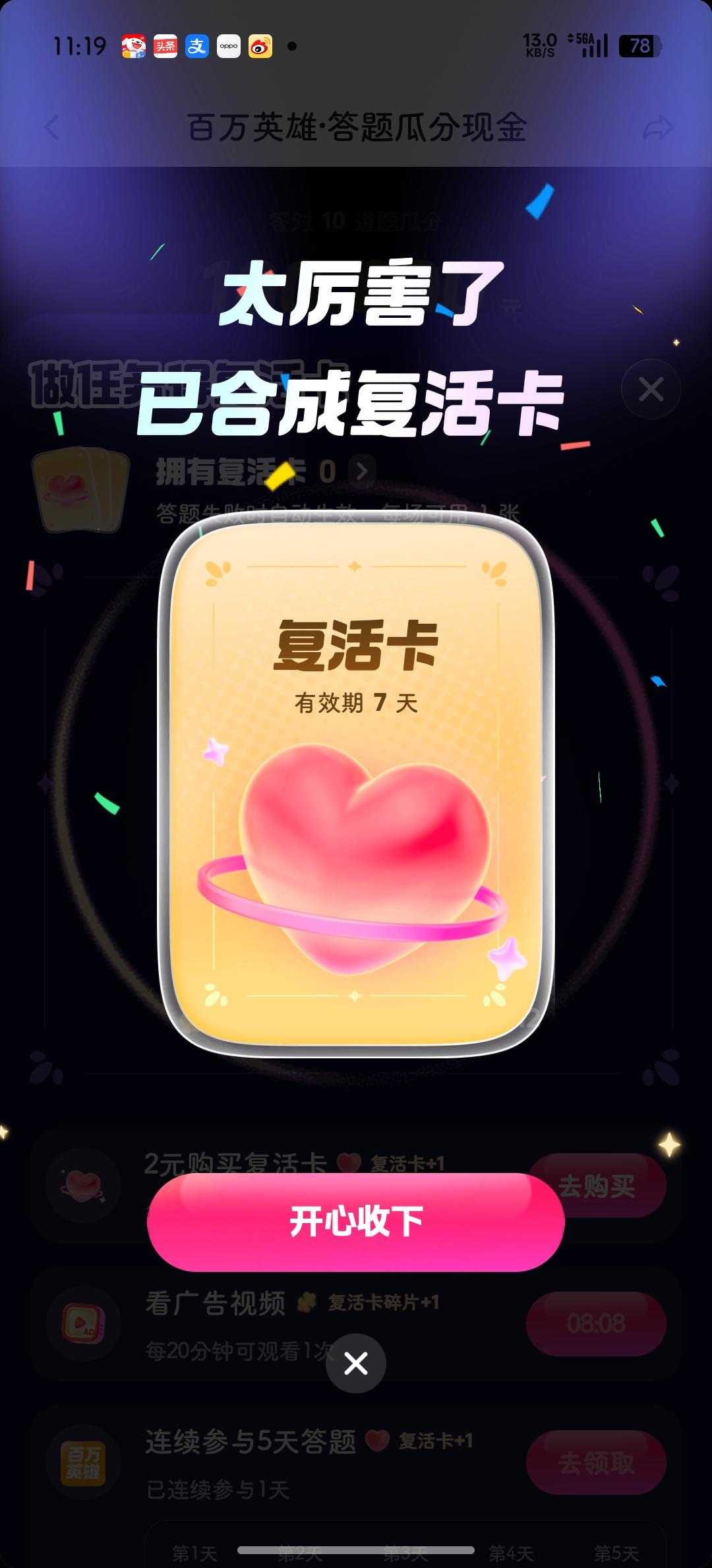 好不容易攒了一张复活卡,
